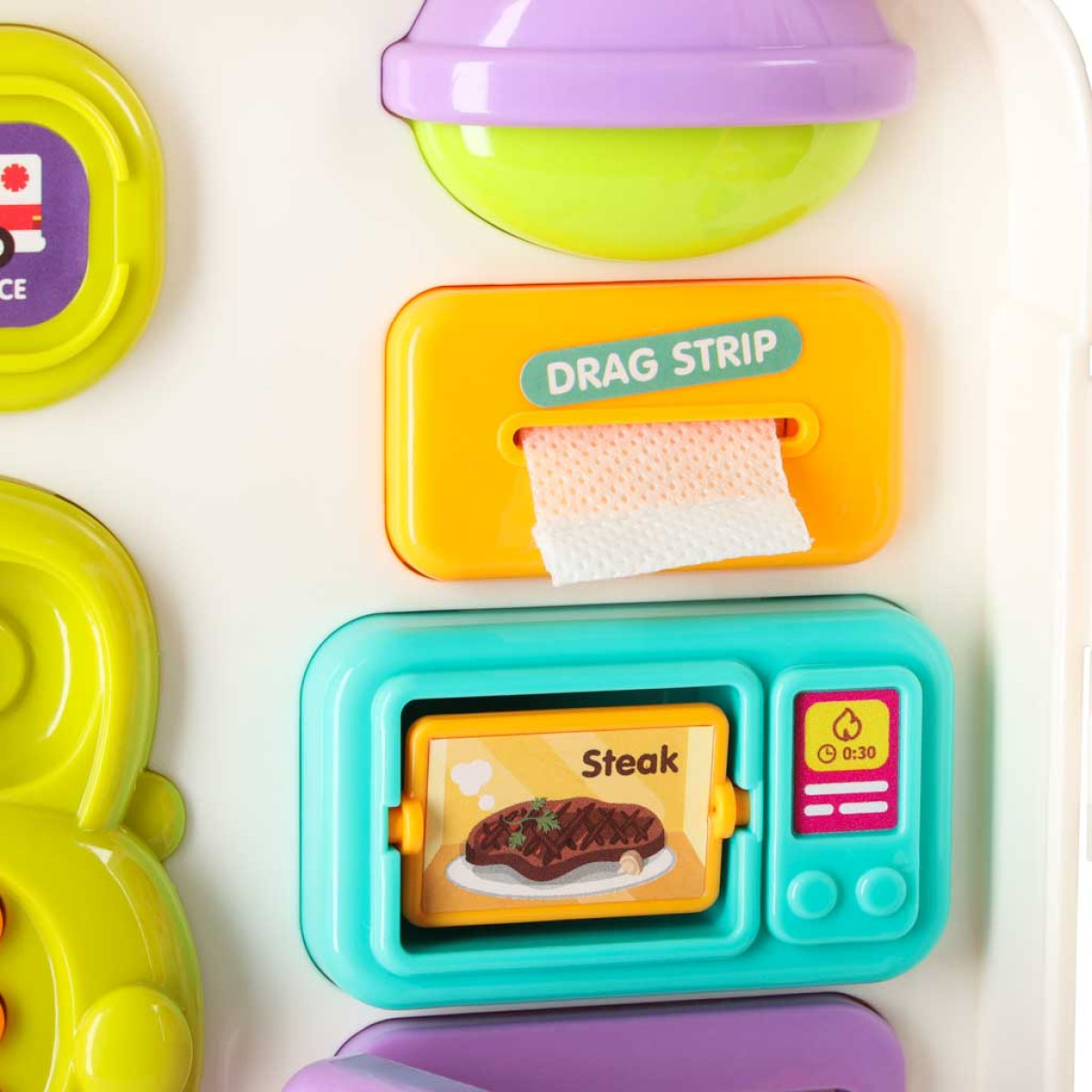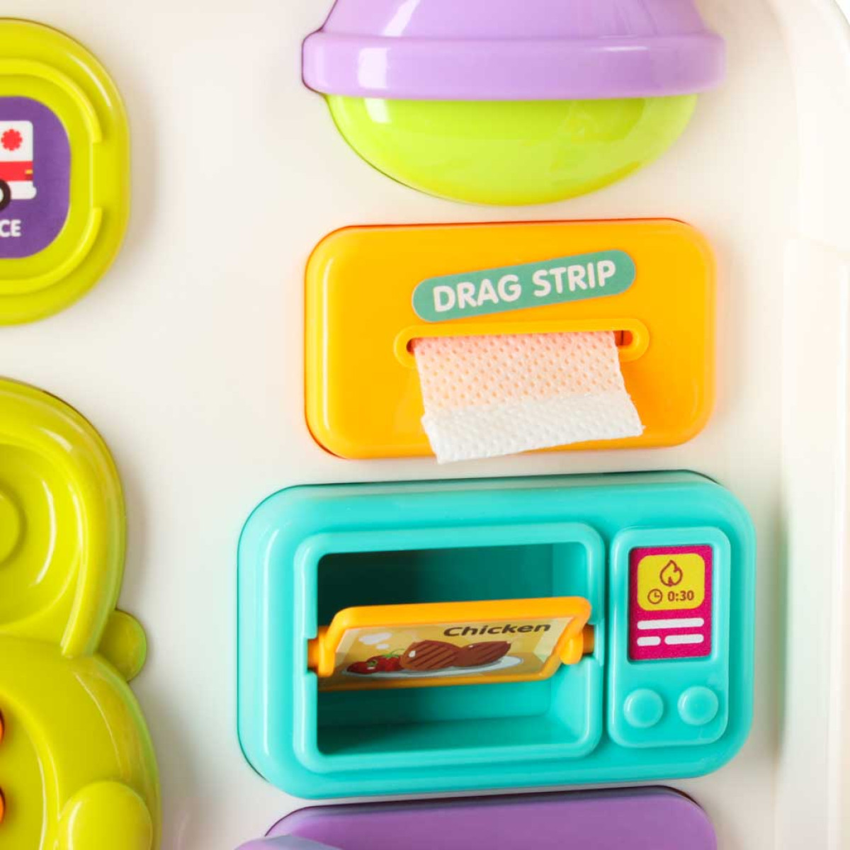 Iedomājieties rotaļlietu, kas ne tikai kustas, mirgo un runā, bet arī rūpējas par jūsu bērna attīstību. Tieši tā darbojas šis izcilais sensoru vingrinājumu komplekts Montessori koferī - izglītojošs bus. Vienā gudrā konstrukcijā ir paslēpta mini pasaule, pilna ar kustībām, faktūrām, poguļiem un mehānismiem, kas ikdienas spēlēšanu pārvērš aizraujošā atklāšanā. Koferis tiek izvērsts kā mazās laboratorijas scenogrāfija - un bērns, to nemanot, trenē uzmanību, motoriku un sajūtas. Tas ir arī vieta, kur mācību elementi ikdienas darbībām kļūst par iemeslu veidojot pirmās, bērnišķīgās "super spējas". No vāku aizvēršanas līdz logu pārvietošanai - katra kustība ir solis uz patstāvību.
