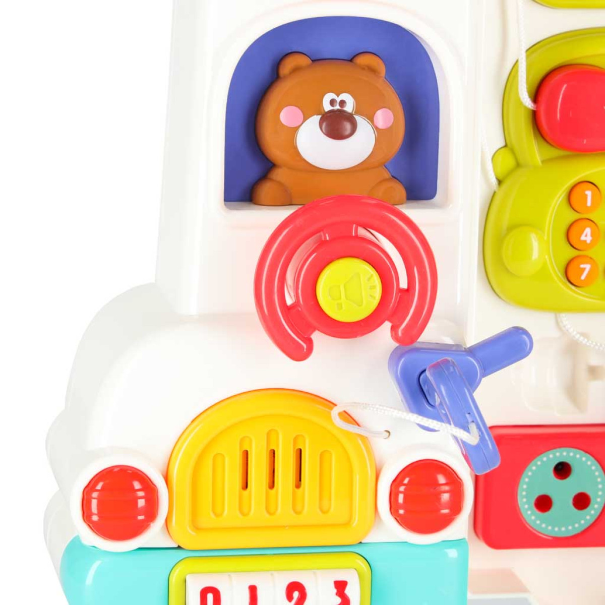 Šajā busā viss ir svarīgs. Katrs poga un katrs pagrieziens atbalsta sensoros vingrinājumus, un gudri izvietotie moduļi māca mazulim veiklību, prasmi un drosmi eksperimentēt. Šeit bērns atklāj pasaules darbības principus, veicot ikdienas darbības visdabiskākajā veidā - caur spēli. Visizcilākā sastāvdaļa ir šņorēšanas mācība, kurā palīdz kultūrvēsturiskā šņorēšanas apavi. Tas iepazīstina bērnu ar precīzām roku kustībām, kas ir tik nepieciešamas vēlāk zīmēšanā, rakstīšanā un pašapģērbošanā.