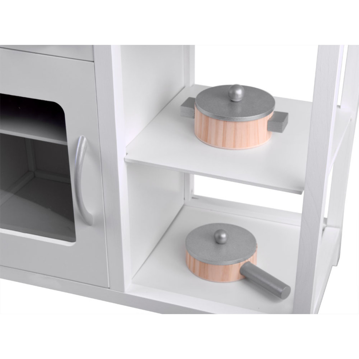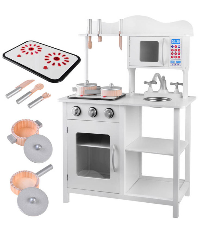 Interaktīva BALTA koka virtuve bērniem ar indukciju + aksesuāri ZA4127