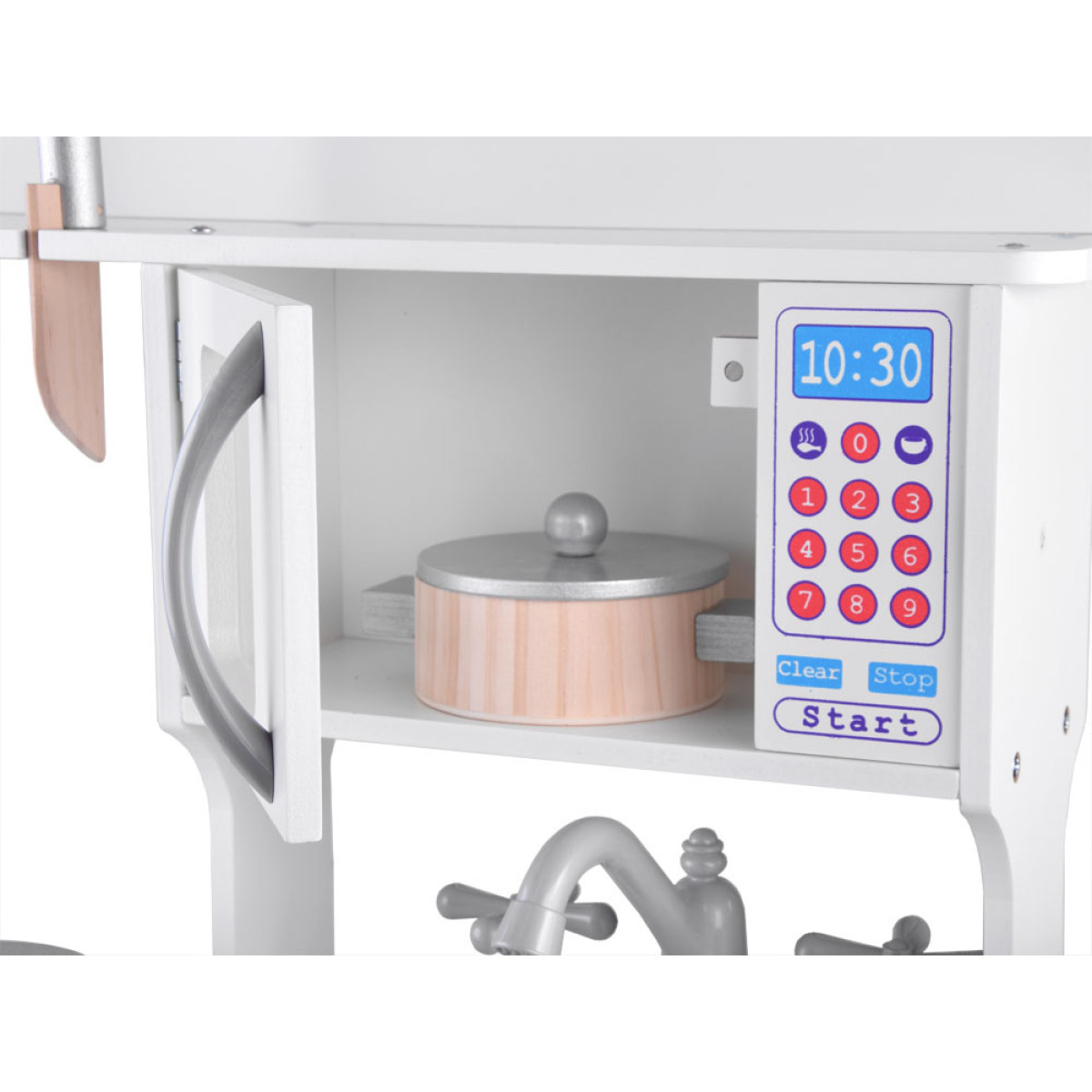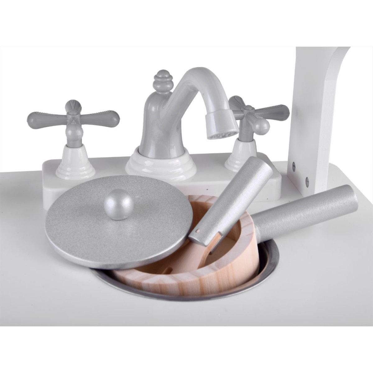 Balta koka virtuve – ideāla rotaļām virtuvē