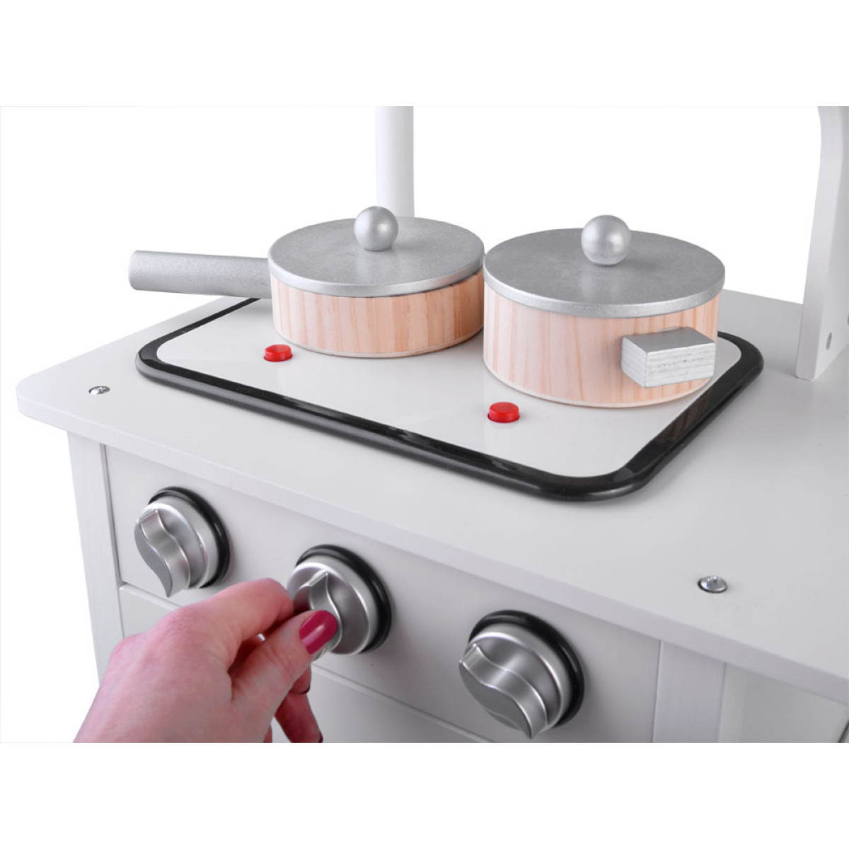 Interaktīva BALTA koka virtuve bērniem ar indukciju un aksesuāriem ZA4127