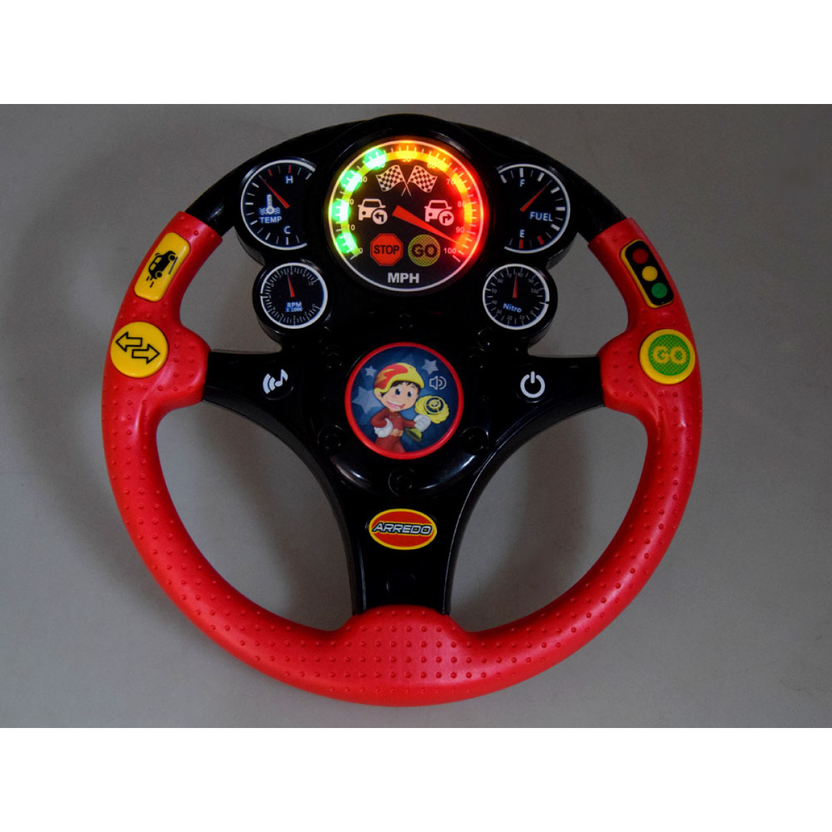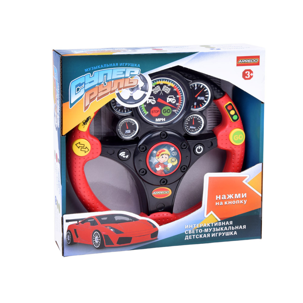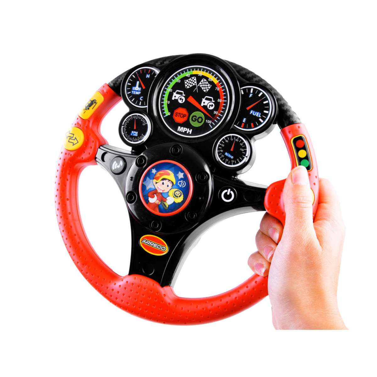 23,5 x 23,5 x 5 cm. Rotaļlieta ir pilnībā izgatavota no plastmasas melnā un sarkanā krāsā ar apgaismotu pulksteni, nodrošinot daudz radoši pavadītu laiku. Ar interaktīvo stūres ratu ceļojums uz bērnudārzu vai ekskursijā būs tikai tīra bauda. Rotaļlieta ir iepakota kartona kastē, lieliski piemērota kā dāvana jaunajam autovadītājam.