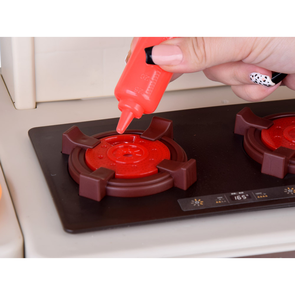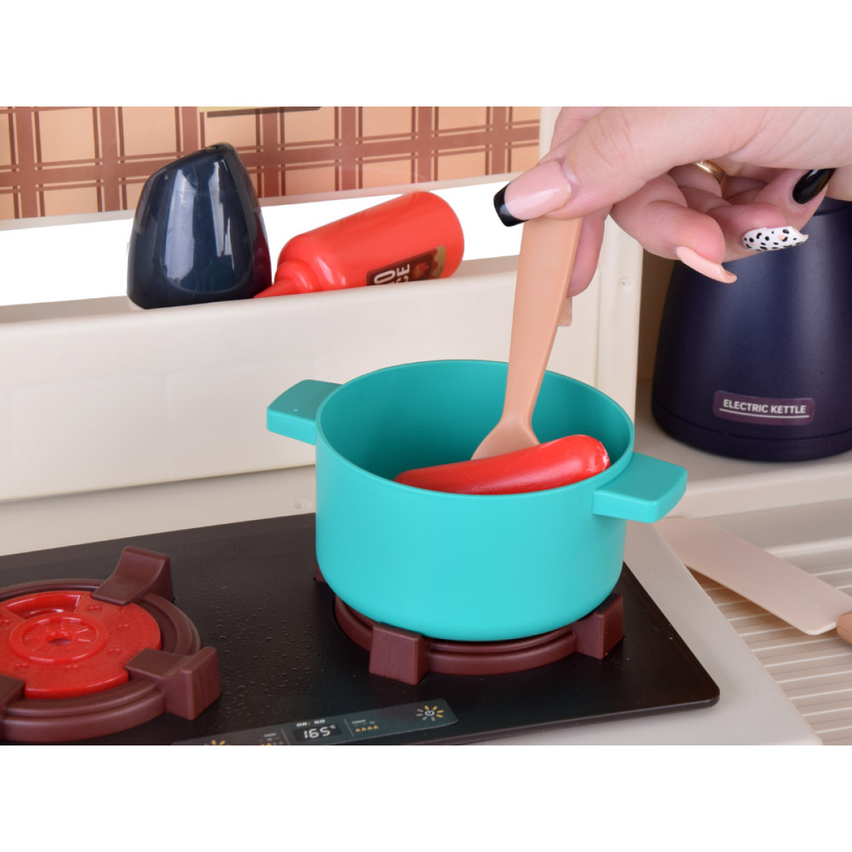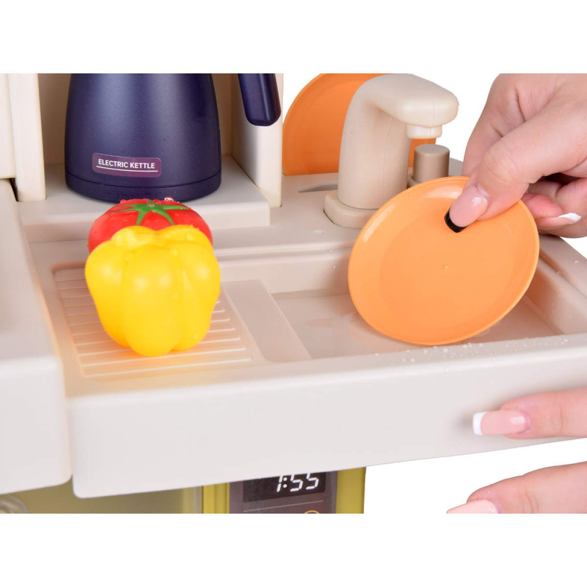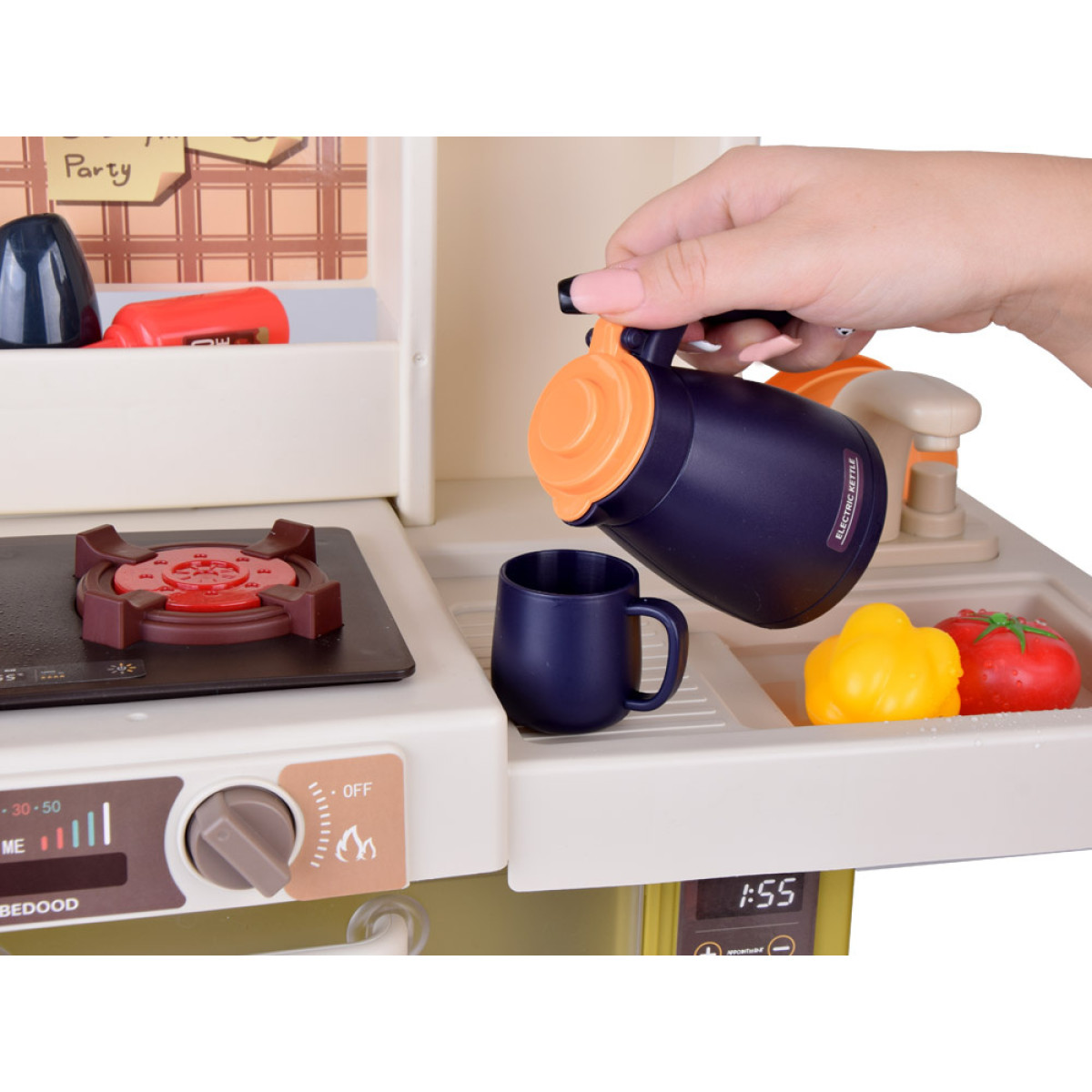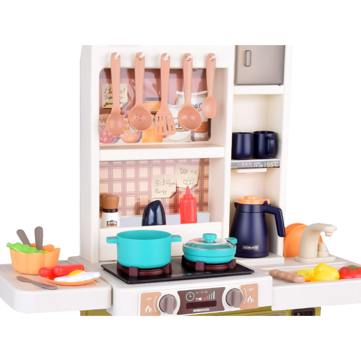 Interaktīvā bērnu virtuve ar piederumiem ir krēmzaļā krāsā, un tā sastāv no 55 elementiem. Šis komplekts atdarina īstu virtuvi, ļaujot bērniem spēlēt lomas un atdarināt pieaugušos gatavojot. Virtuvē ir cepeškrāsns, ledusskapis, trauku mazgājamā mašīna, plaukti, āķi, tvaika nosūcējs, pulkstenis ar kustīgām rādītājām, kā arī izlietne ar krānu, no kura tek ūdens. Virtuve darbojas ar baterijām, kas ļauj izmantot skaņas un gaismas efektus, piemēram, burbuļošanu, spīdošus degļus un tvaiku.