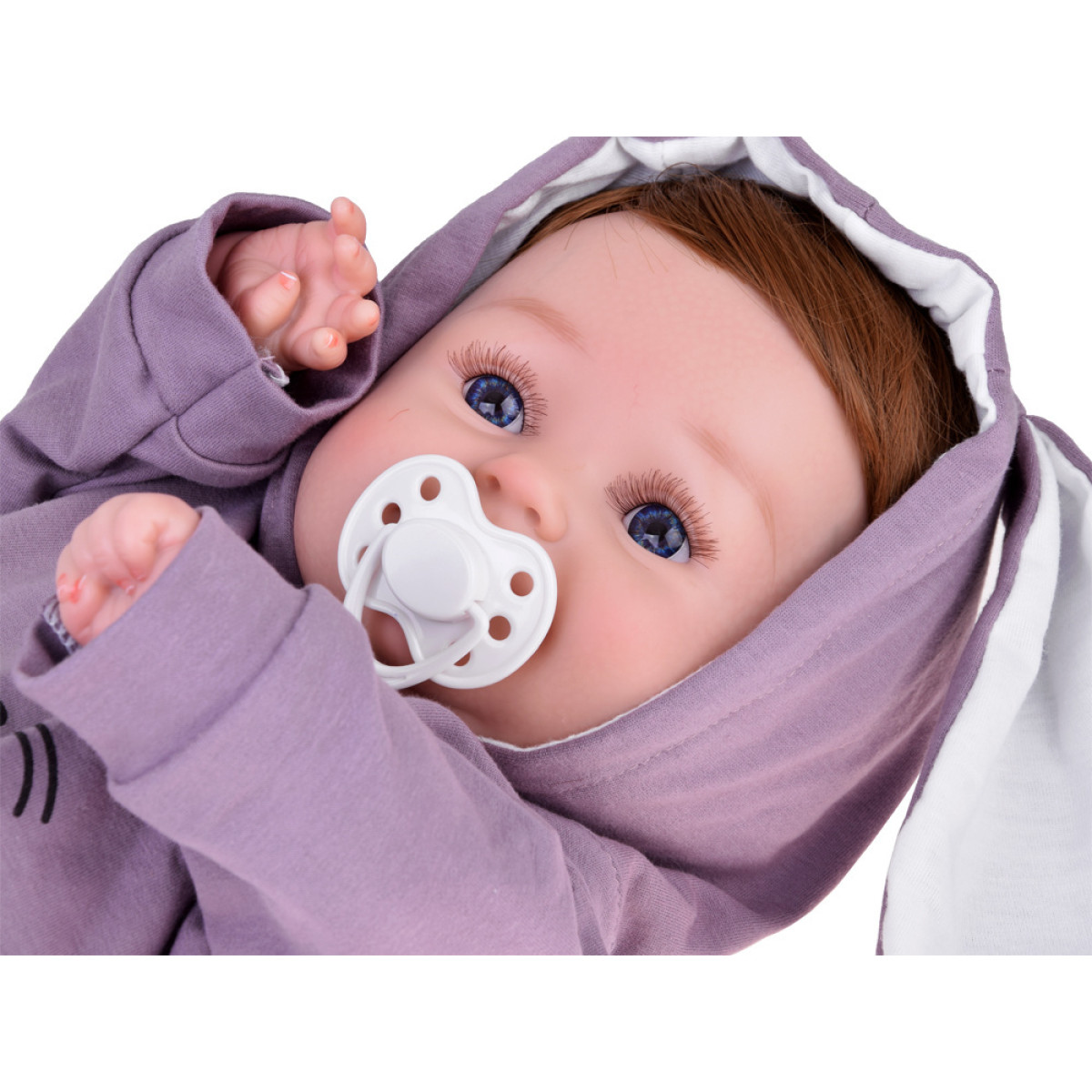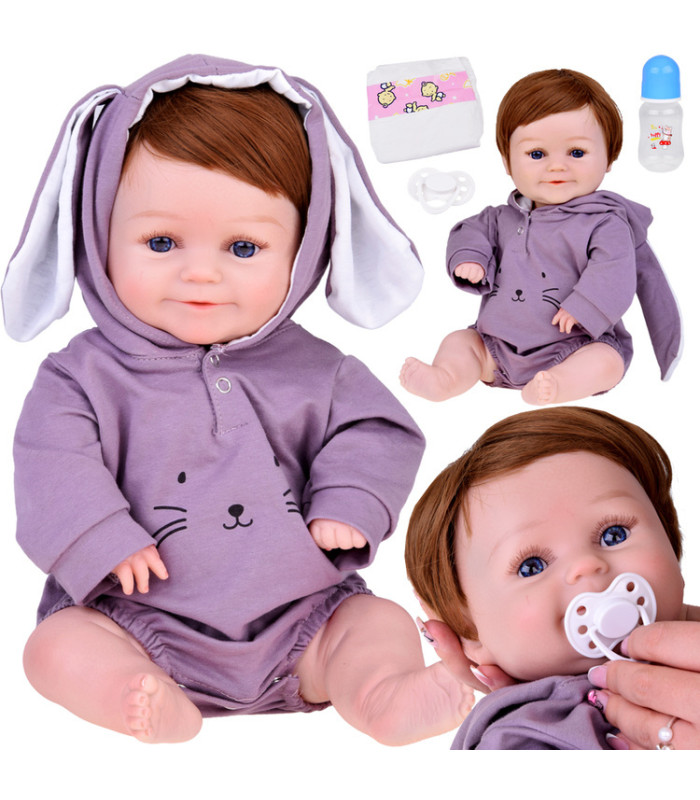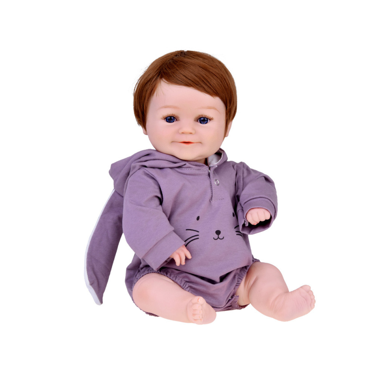 Skaistais mazulis ir izgatavots no mīkstas gumijas, rūpīgi izstrādājot detaļas, kā piemīlīgās rievas un reālistiski attēlotas acis. Zēnam ir biezi brūni mati, kas veido simpātisku sejiņu. Uzmanību piesaista lielas, zilas acis ar biezām skropstām. Mazais deguns un smaidīgā mute papildina kopējo tēlu. Lelles acis neaizveras.