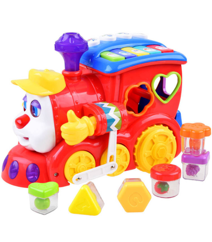 Rotaļlietā ietilpst komplekts krāsainu klucīšu ar dažādām formām, kas jāpiemēro atbilstošajiem caurumiem vilcienā. Katrs klucītis slēpj augli, uz tā virsmas ir burts vai cipars: