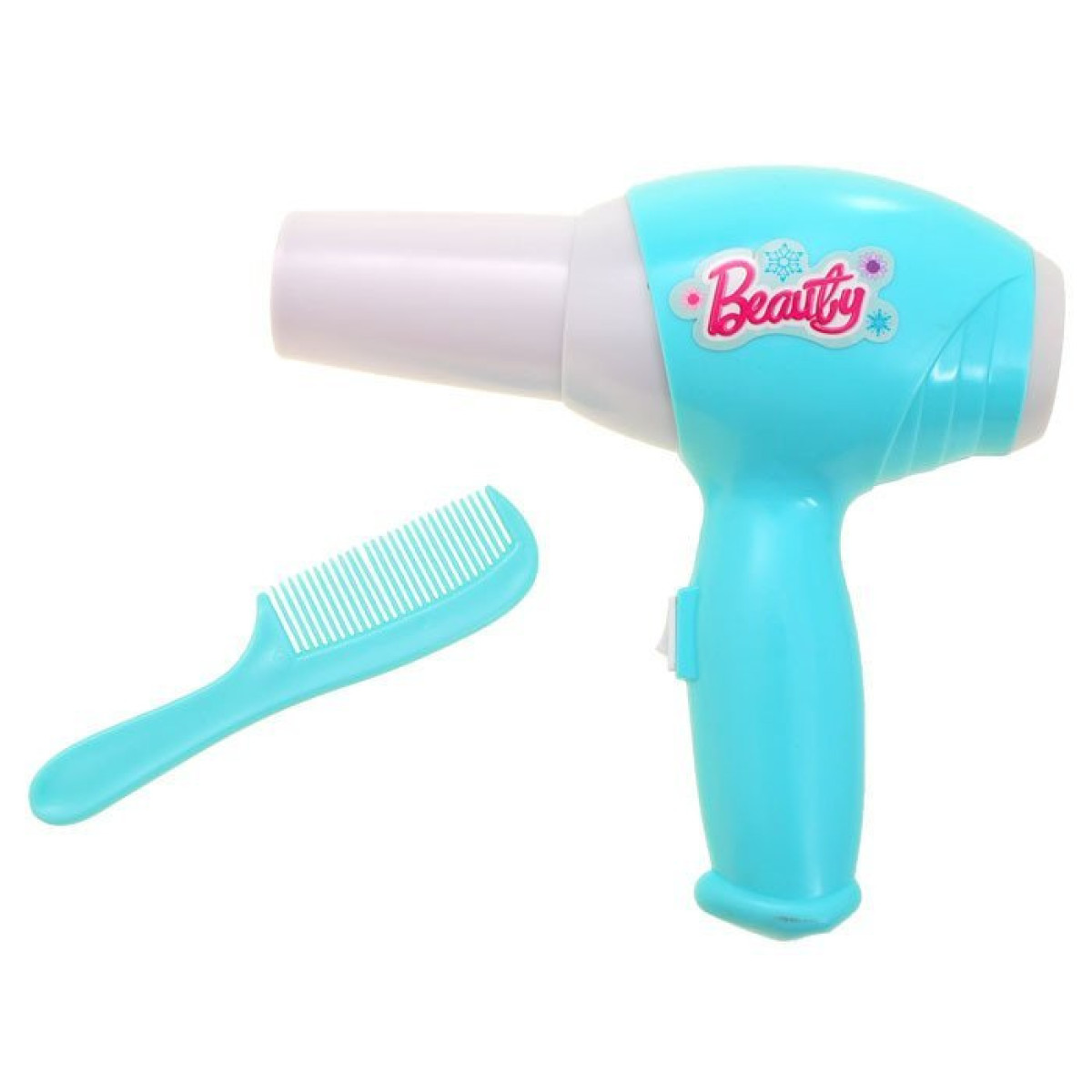- matu žāvētājs (darbojas ar baterijām, kā īsts – nepieciešamas 2 x AA, nav iekļautas),