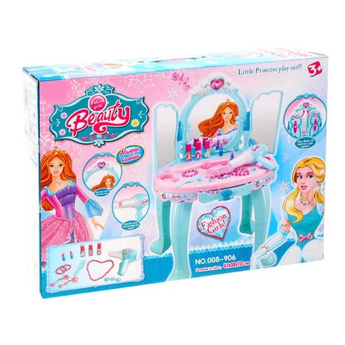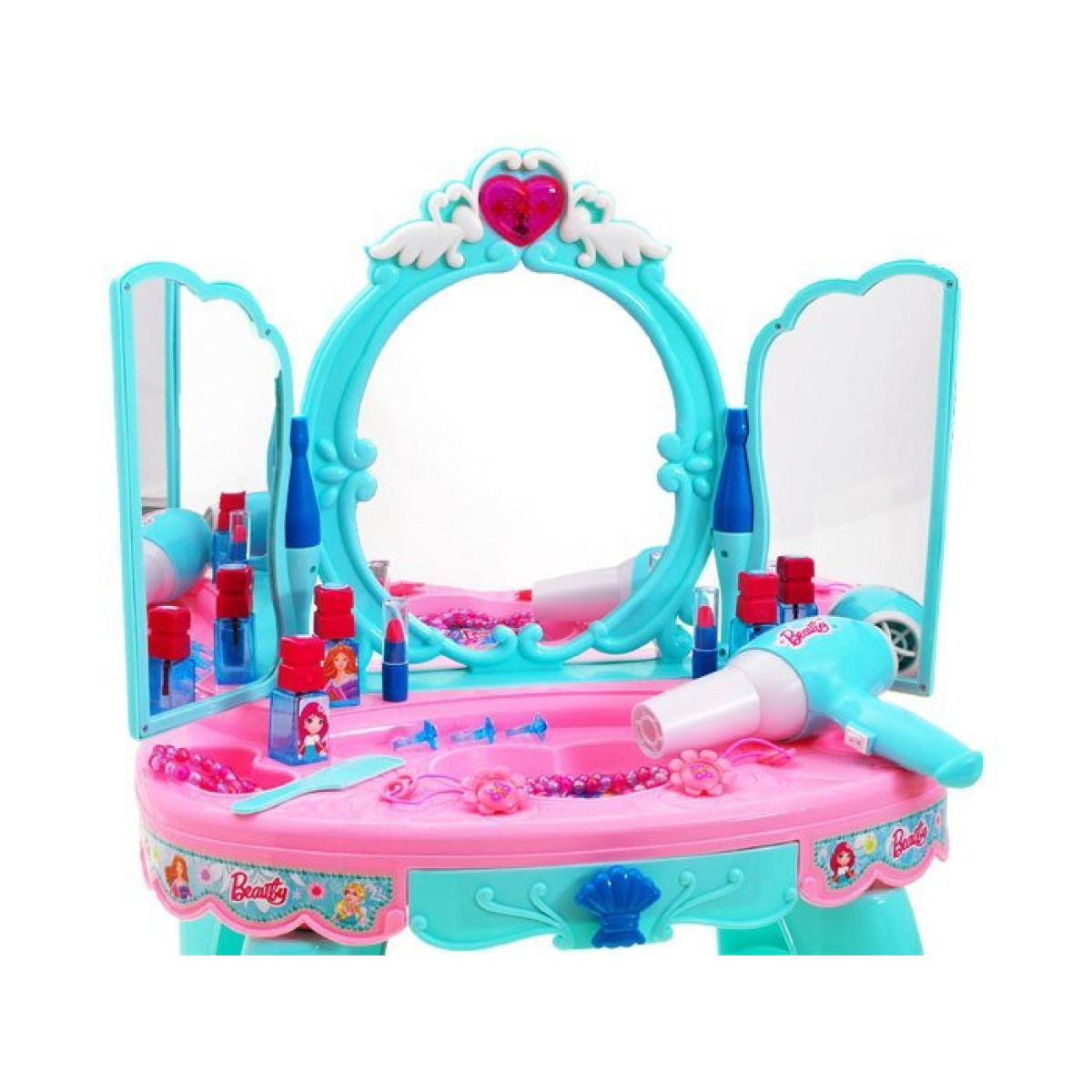 Šī burvīgā pasteļu tualete ir sapņu komplekts katrai mazajai modes un skaistuma mīļotājai. Paredzēta jaunākajām meitenēm, tā pārsteidz ar estētiku, detaļu bagātību un funkcionalitāti, kas pārvērš spēli radošuma un iztēles pasaulē.