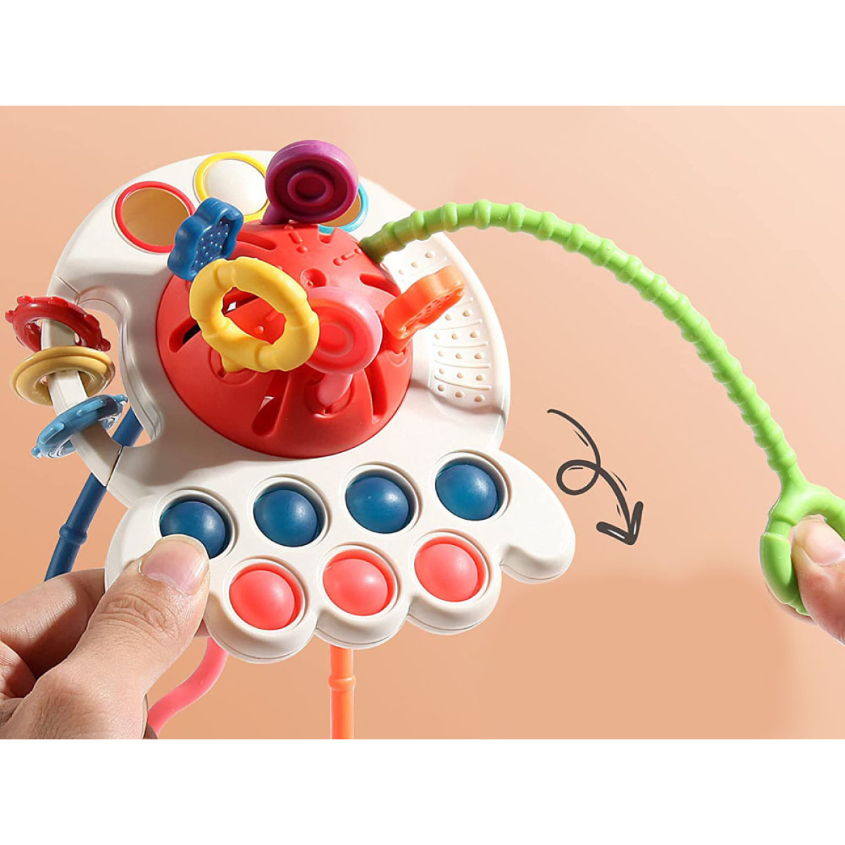 Daudzfunkcionālā sensoru rotaļlieta efektīvi trenē bērna roku elastību un uzlabo praktiskās iemaņas. Ideāli piemērota ceļojumos, nodrošinot, ka bērns ir aizņemts un mierīgāks. Plašāko izvēli ar grabuļiem un interaktīvām rotaļlietām atradīsiet veikalā Jokomisiada.