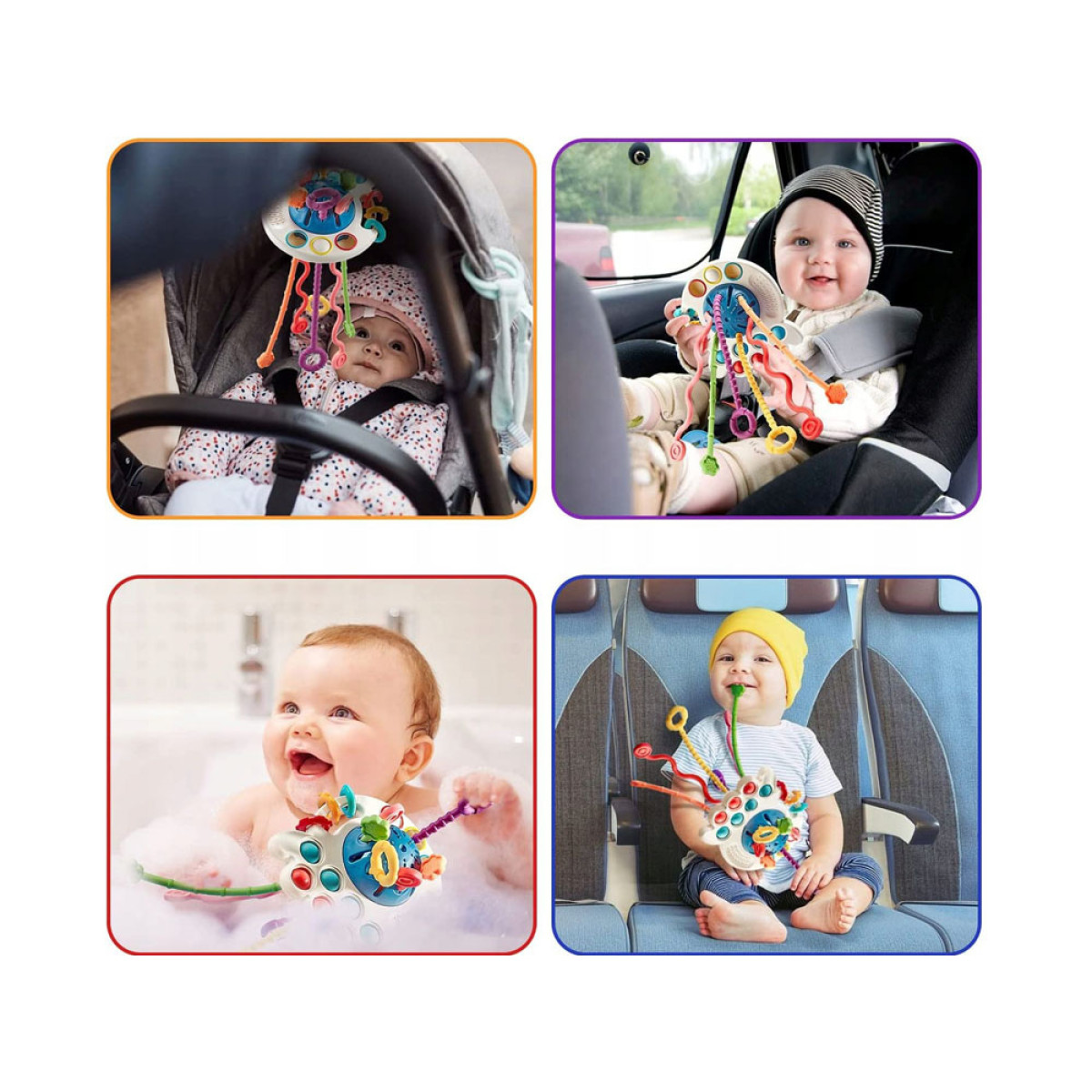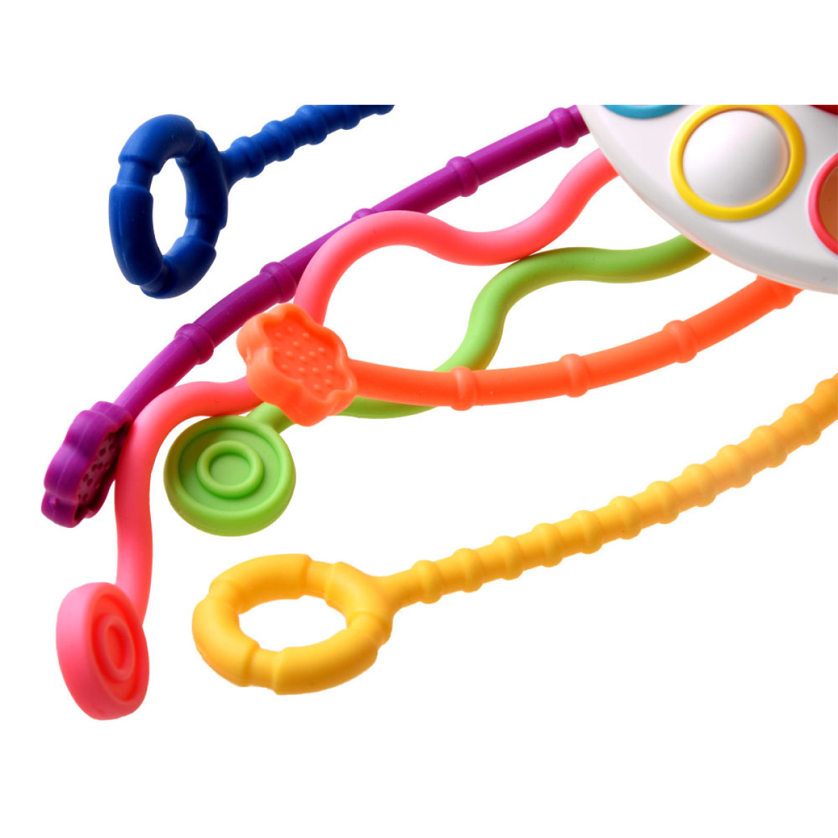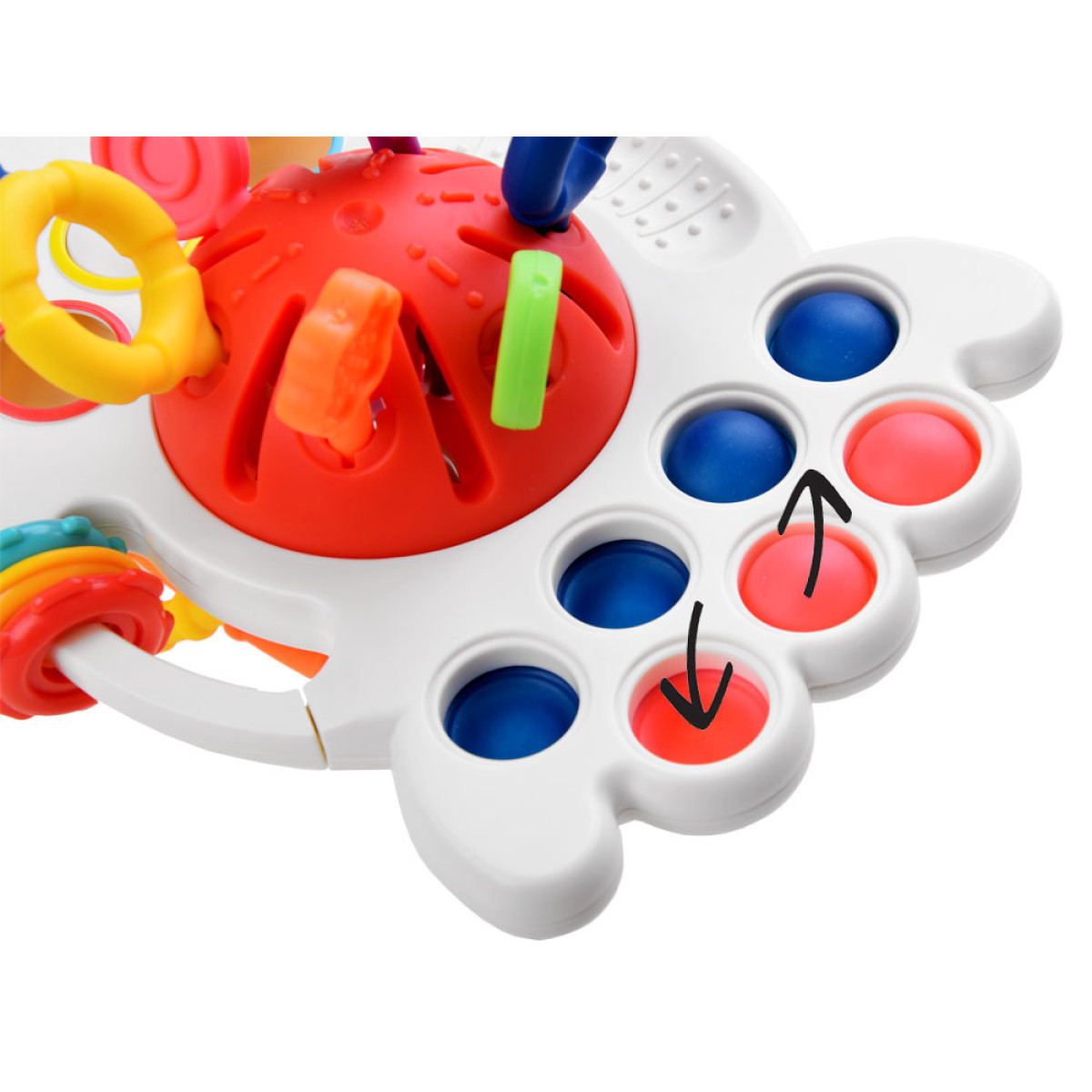 - daudzfunkcionāla sensoru rotaļlieta var kalpot kā graužamrīks, kā arī priekšmets mazu rociņu trenēšanai,