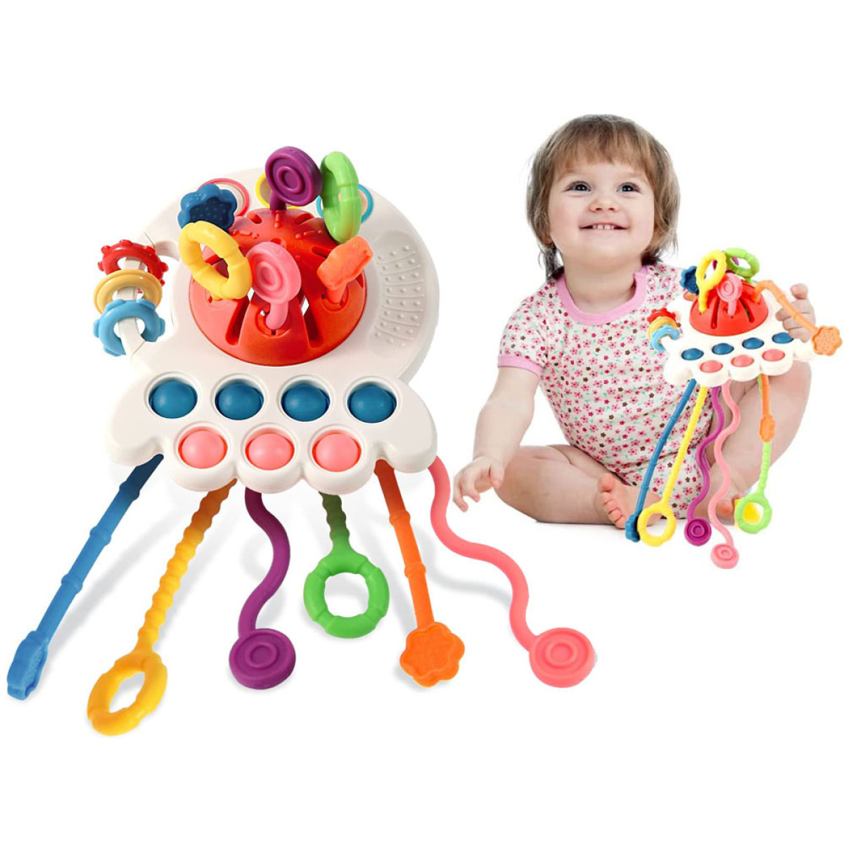 Interaktīvā daudzfunkcionālā sensoru rotaļlieta 4 vienā UFO ir paredzēta bērniem no 18 mēnešu vecuma. Šī rotaļlieta palīdzēs bērnam atklāt dažādas tekstūras un formas, un tā ir aprīkota ar daudzām funkcijām, kas pozitīvi ietekmēs mazuļa motoriskās spējas. Krāsas un formas rosinās bērna ziņkāri. Abas rotaļlietas puses ir pārklātas ar pretapgriešanās struktūru, kas nodrošina ērtu turēšanu. UFO izceļas ar estētisku izpildījumu, patīkamām krāsām un formām, kas piedāvā daudz interesantu spēles iespēju.