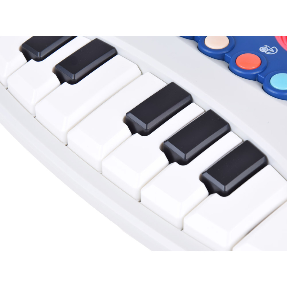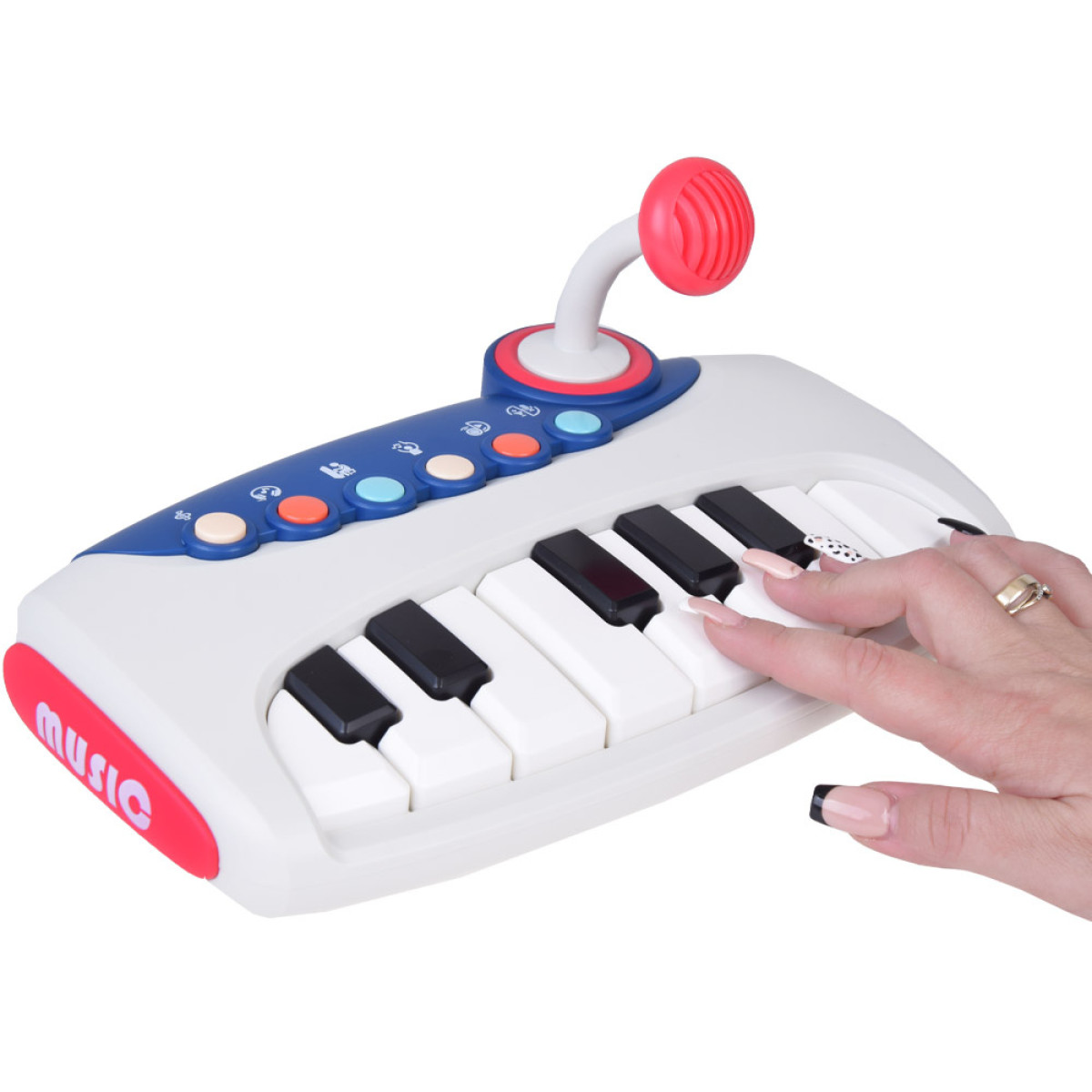 Krāsainās muzikālās klavieres ir lieliska izvēle jebkuram mazam mūzikas skaņu cienītājam. Klavieres ir aprīkotas ar sešiem dažādiem mirdzošiem pasteļu krāsas taustiņiem un melnbaltiem taustiņiem. Klavieres var ieslēgt ar slēdzi, kas atrodas rotaļlietas aizmugurē. Komplektā ietilpst 3 x 1,5 V AA starta baterijas. Bērns, spiežot klavieru taustiņus, dzirdēs skaņas un melodijas. Papildus ir mikrofons, kurā var dziedāt.