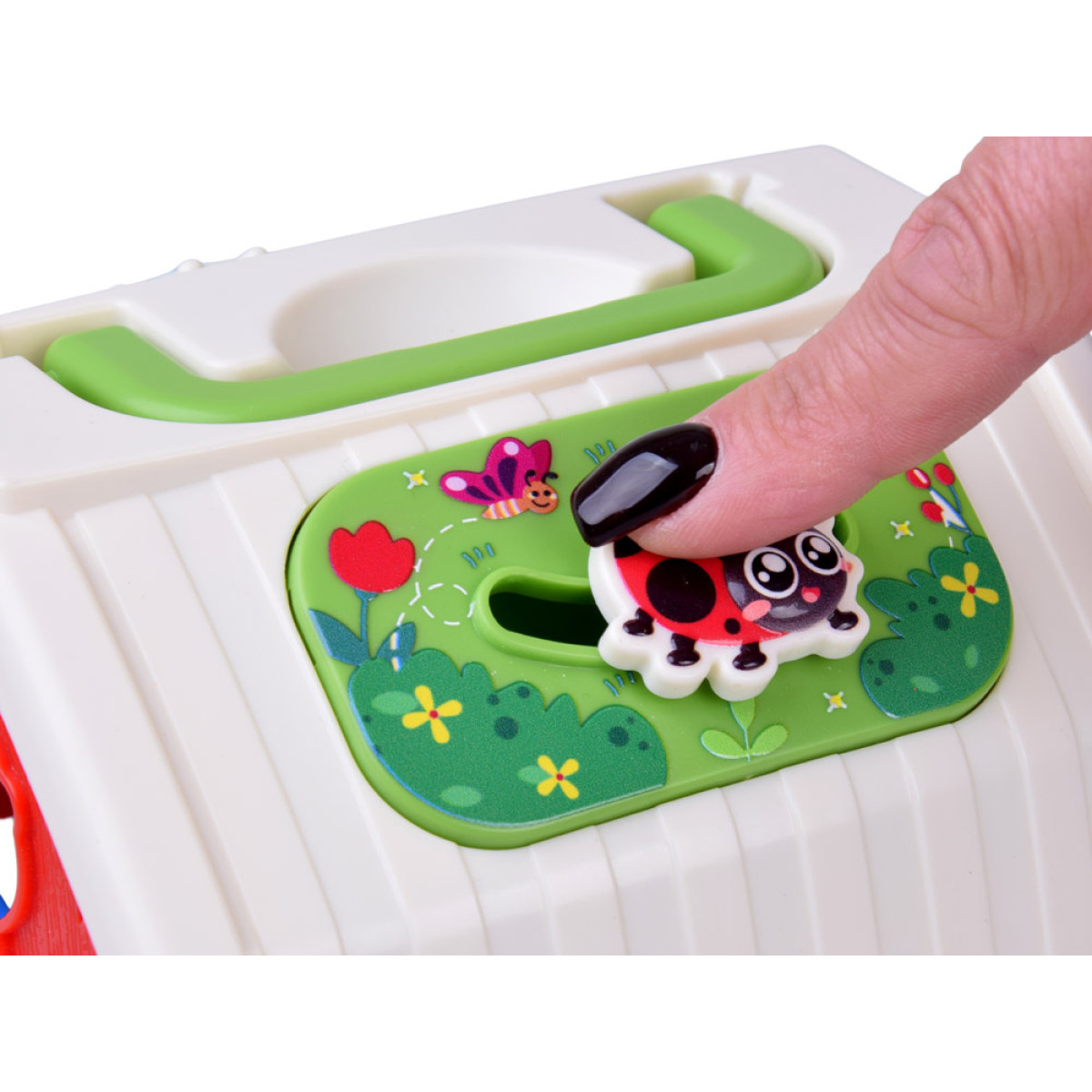 - Režīms 3 – Aizraujoša spēle: bērnam jāsameklē pareizo klucīti un jāievieto to pareizajā caurumā.