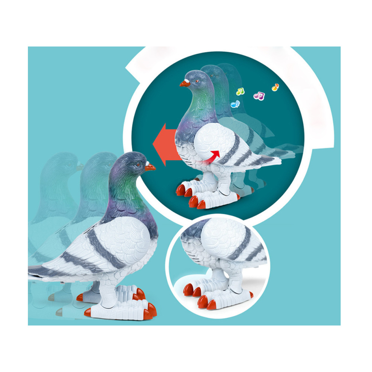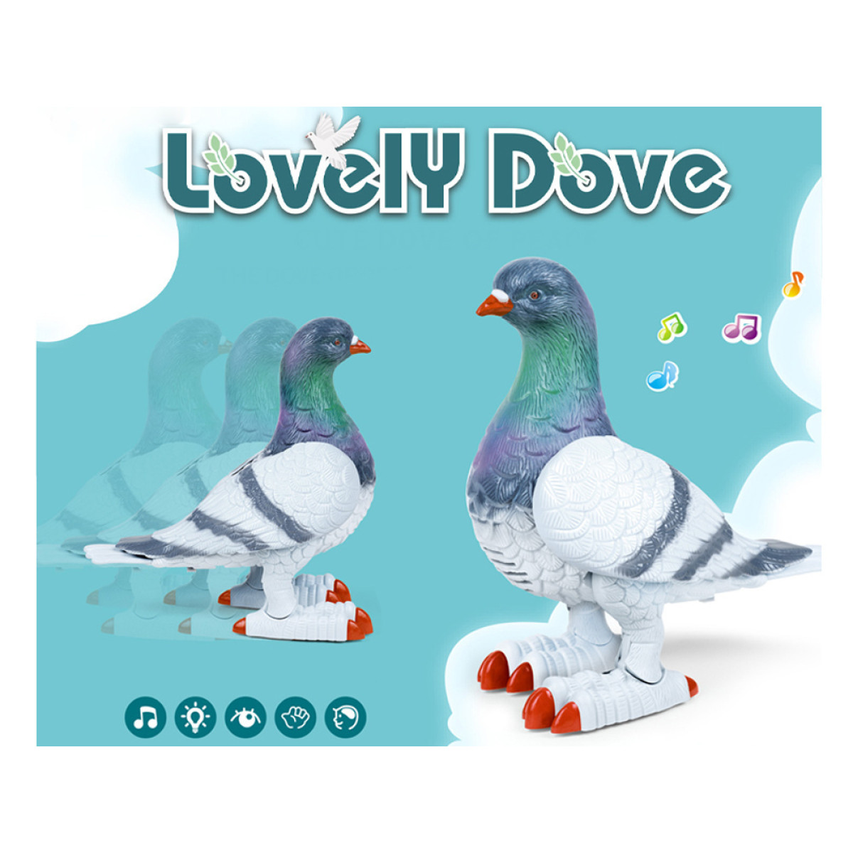 Interaktīvais balodis ar baterijām ir lielisks izgudrojums! Tas ir veidots ļoti reālistiski, ar baloža krāsu un formu, kas atbilst īstajam putnam. Rotaļlieta pārvietojas lēni uz priekšu, kustina spārnus un mirkšķina acis, pavadošā jautrā alpu kalnu melodija rada prieku.
