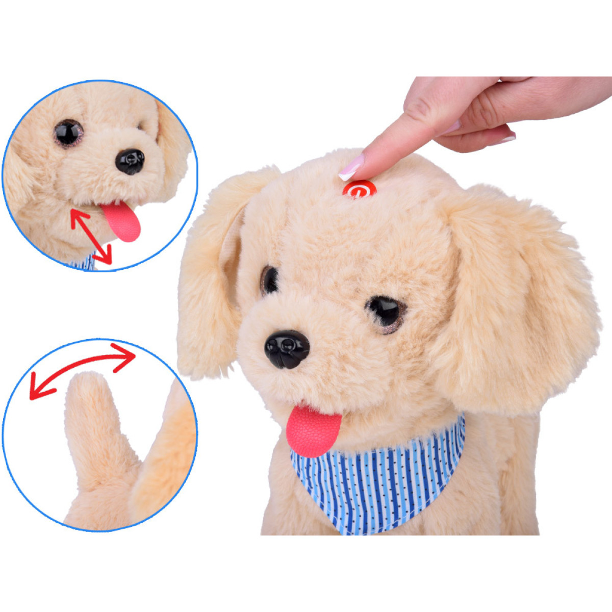 Vienkārši ievietojiet baterijas sunīša vēderā un ieslēdziet slēdzi on/off. Tinka reaģē uz pogu, kas atrodas uz viņas galvas. Vienkārši paglaudiet viņu, un viņa sāks staigāt un izdot suņa skaņas, kas piešķir spēlei īpašu reālismu un interaktivitāti.