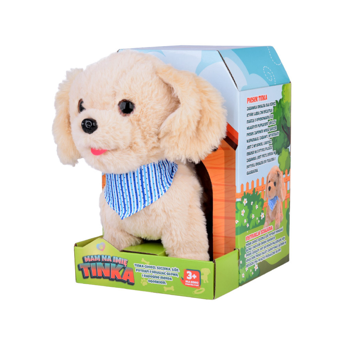 Iepazīstieties ar Tinku, burvīgs, interaktīvs sunītis skaistā biskvīta krāsā ar zilu šalli ap kaklu, kas iepriecinās katru mazo dzīvnieku mīļotāju! Ideāls sunītis bērniem, kuri sapņo par savu lolojumu, Tinka nodrošinās stundas brīnišķīgu spēļu un apskāvienu.