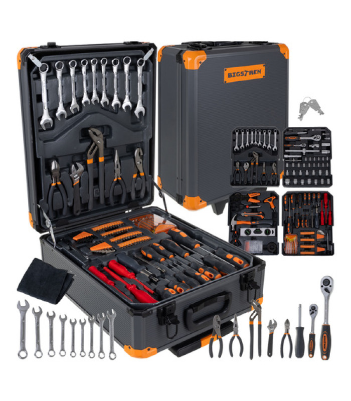 Bigstren 1000 elementu instrumentu komplekts ir viens no vispilnīgākajiem instrumentu komplektiem tirgū. Alumīnija koferī ir četri izņemami organizatori, kas ir piepildīti ar atslēgām, uzgaļiem, uzmavām, skrūvgriežiem, knaiblēm un montāžas piederumiem. Komplektā iekļauts viss, kas nepieciešams mājas, darbnīcas un automobiļu remontam. Koferis ir aprīkots ar riteņiem, teleskopisko rokturi un metāla slēdzeni ar atslēgu, kas nodrošina lielisku mobilitāti un drošību.
