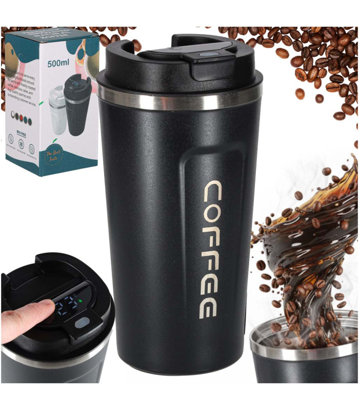Viedā ceļojumu krūze ar LED displeju melnā krāsā un ietilpību 500 ml