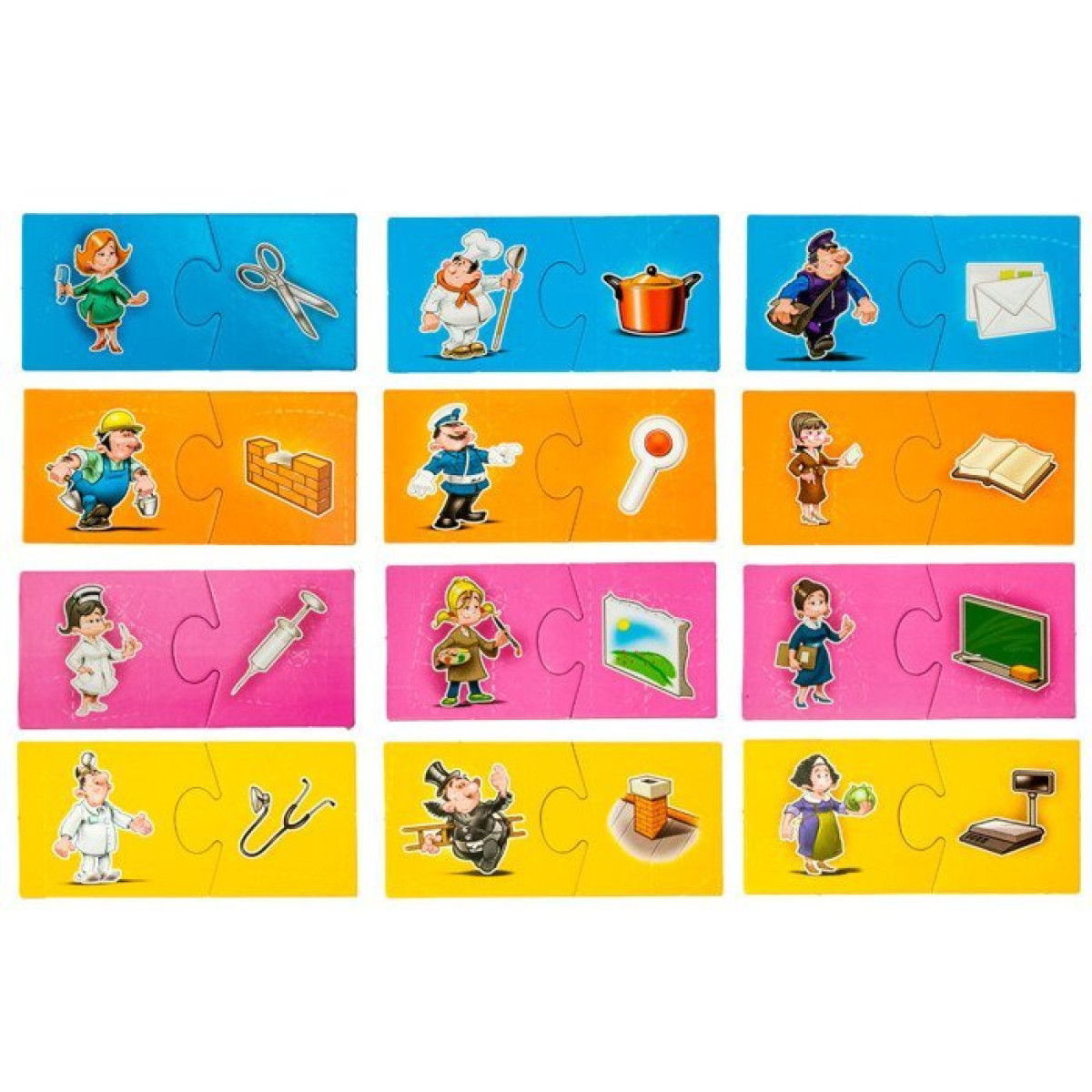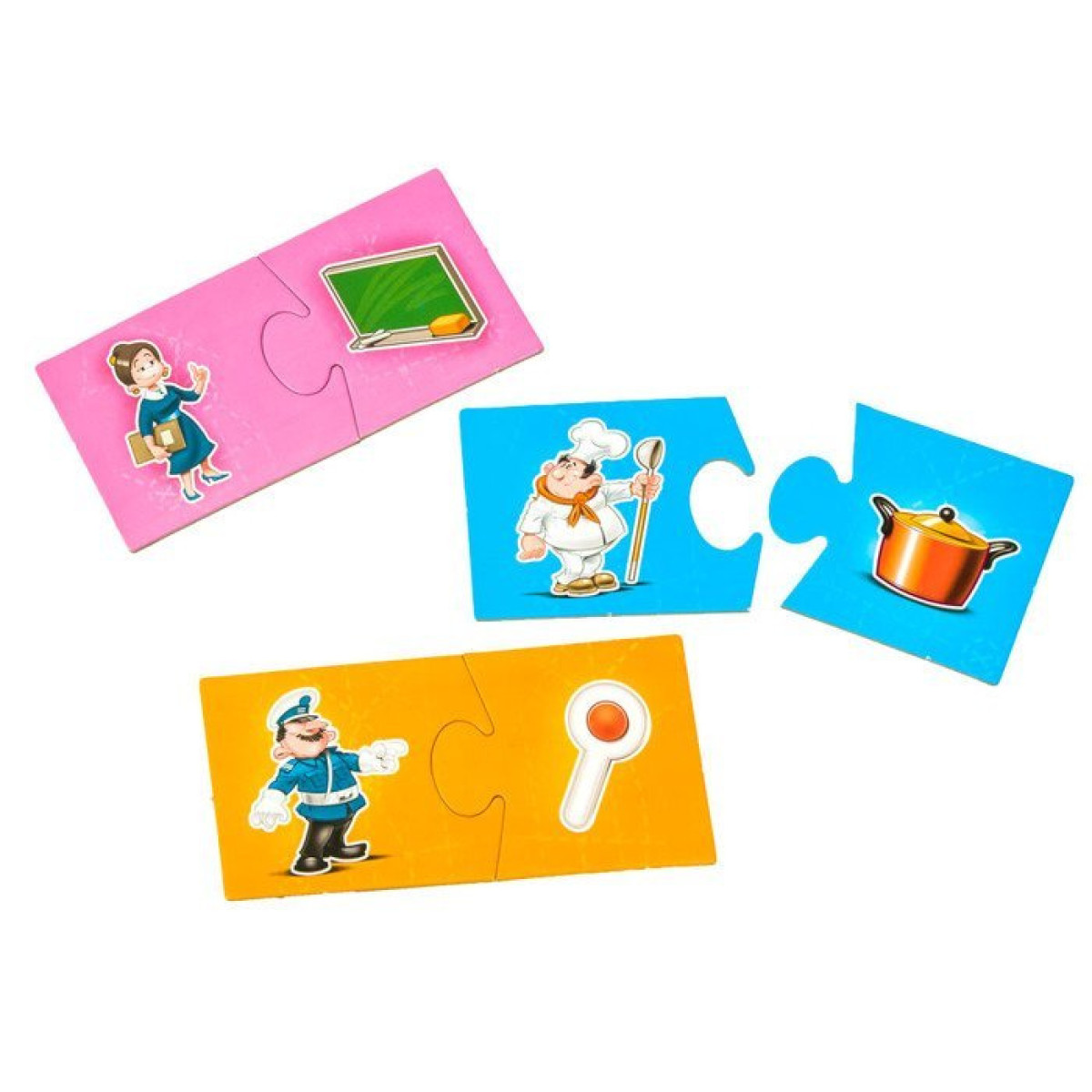Tā apvieno mācīšanos ar prieku, piedāvājot bērniem iespēju iepazīt profesiju pasauli. Spēles mērķis ir savienot atbilstošus puzles elementus - bērni izvēlas puzles gabalus ar profesijām un savieno tos ar priekšmetiem, kas attiecas uz šīm profesijām. Piemēram, pavāra attēlu savienot ar katlu, bet mehāniķi ar uzgriežņu atslēgu. Šāda spēle attīsta iztēli, palīdz apgūt dažādas profesijas un ievada bērnus darba un rīku pamatos.