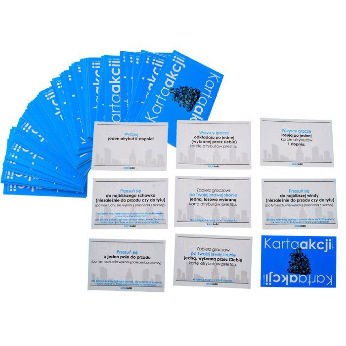 Spēles laikā dalībnieki spēlē Kartes Darbībām (110 kartes), kas var palīdzēt sasniegt mērķi vai traucēt pretiniekiem. Spēlē ir gan labvēlīgas situācijas, piemēram, paaugstinājumi un prēmijas, gan neparedzēti šķēršļi – konflikti ar priekšnieku, kolēģu intrigas vai pēkšņi budžeta samazinājumi.