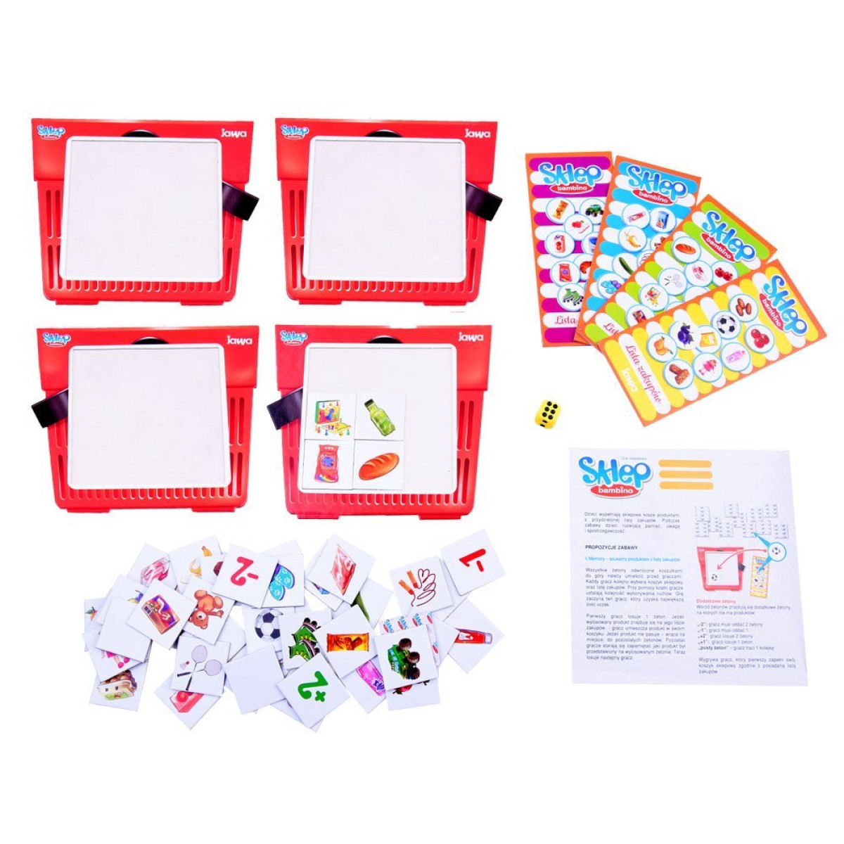 Jawa Spēle "Veikals Bambino" ir izglītojoša spēle, kas vienkāršā un patīkamā veidā apvieno iepirkšanās spēli ar atmiņas un asociācijas prasmju treniņu. Tā ir lieliska iespēja bērniem apgūt pamatprincipus iepirkšanās procesā, vienlaikus attīstot viņu kognitīvās un sociālās prasmes. Spēle ir ideāli piemērota ģimenes kopīgai izklaidei, ļaujot pavadīt kopīgu laiku un atbalstīt bērnu attīstību.