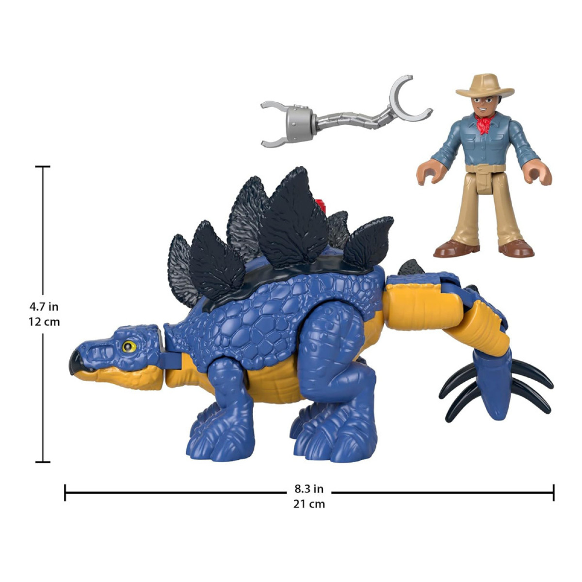 Fisher-Price Imaginext figūru komplekts no Jurassic World sērijas piedāvā Stegozauru un Dr. Grantu, kas piemērots jaunākajiem aizvēsturisko dzīvnieku cienītājiem. Figūra attēlo drosmīgo Dr. Grantu un viņa noķerto Stegozauru. Dinozauram uz muguras ir sarkans spēka kloķis, kas ļauj tam izkļūt no uzliktās jūga. Pagriežot kloķi, dinozaurs kustina asti augšup un lejup.