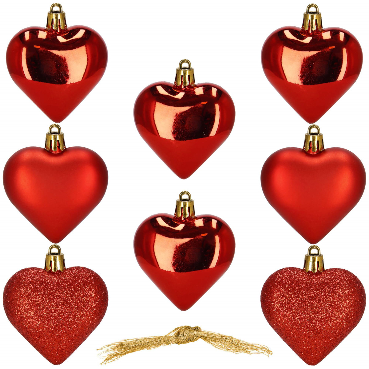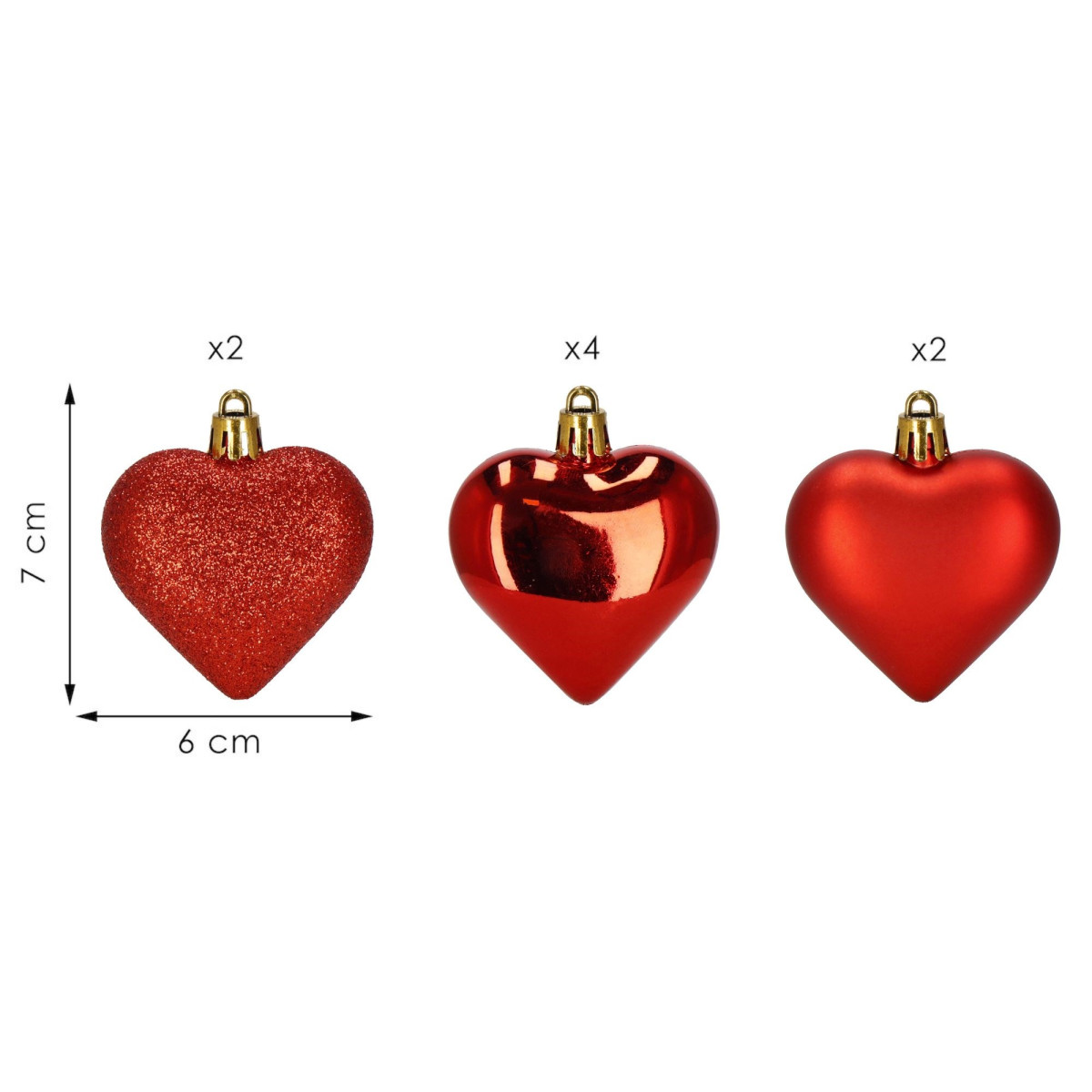 Pamata dati Zīmols: Springos® Materiāls: plastmasa Krāsa: sarkana Komplektā esošo gabalu skaits: 8 Nesalaužami Ziemassvētku bumbu rotājumi Veids: spīdīgas / ar spīguļiem / matētas Forma: sirds Komplektā ietilpst: 4 spīdīgas bumbas 2 bumbas ar spīguļiem 2 matētas bumbas Izmēri: Kopējais garums: 7 cm Garums bez aukliņas: 5,5 cm Platums platākajā vietā: 6 cm