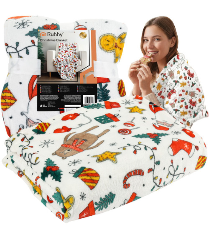 RUHHY lengvas dvigubas kalėdinis apklotas, lovatiesis, užtiesalas 150x200 cm – apgaubs jus jaukiai ir sukurs šventinę atmosferą.