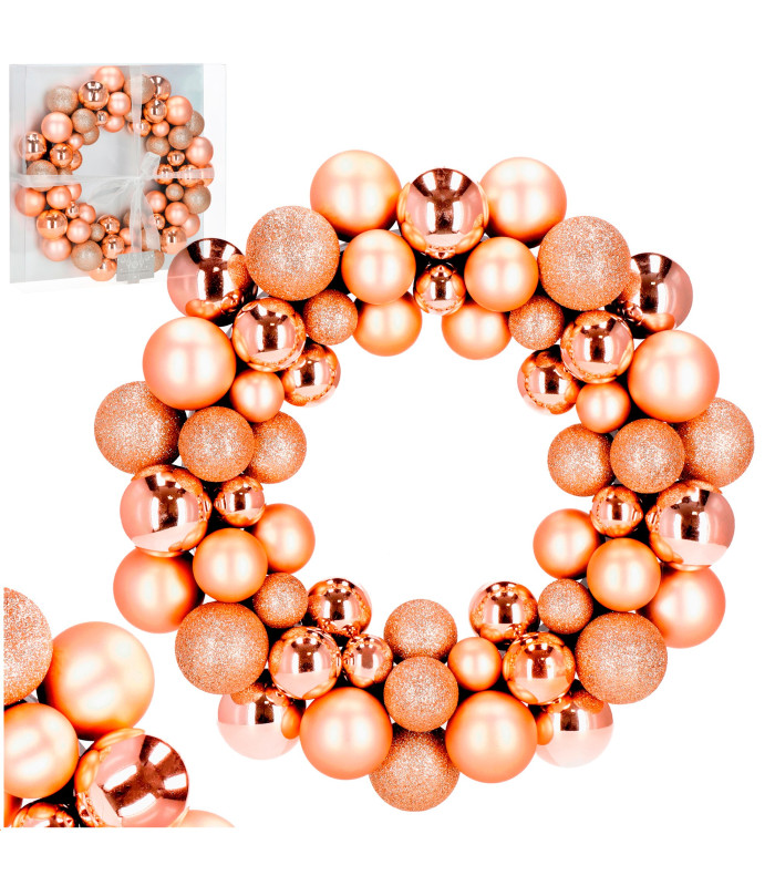 Pamatinformācija Zīmols: Springos® Materiāls: plastmasa Krāsa: zelta, rozā–zelta Komplektā kopā bumbiņas: 55 Nesalaužamas eglītes bumbiņas Atslēga piekāršanai Veids: pusmatēts / ar spīguļiem / spīdīgs Forma: apaļa Komplektā ietilpst: 4× maza bumbiņa ar spīguļiem 4× maza spīdīga bumbiņa 3× maza pusmatēta bumbiņa 8× vidēja spīdīga bumbiņa 8× vidēja matēta bumbiņa 6× vidēja bumbiņa ar spīguļiem 8× liela matēta bumbiņa 7× liela bumbiņa ar spīguļiem 7× liela spīdīga bumbiņa Izmēri: Maza bumbiņa: 2,5 cm Vidēja bumbiņa: 3,5 cm Liela bumbiņa: 4,5 cm Kopējais diametrs: 34 cm