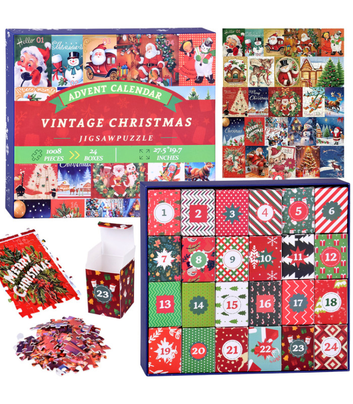 Adventa kalendārs PUZZLE - 24 Ziemassvētku puzles vintage stilā ZA5885