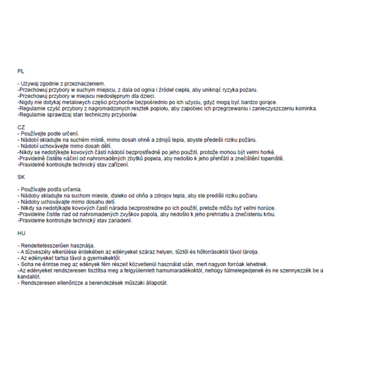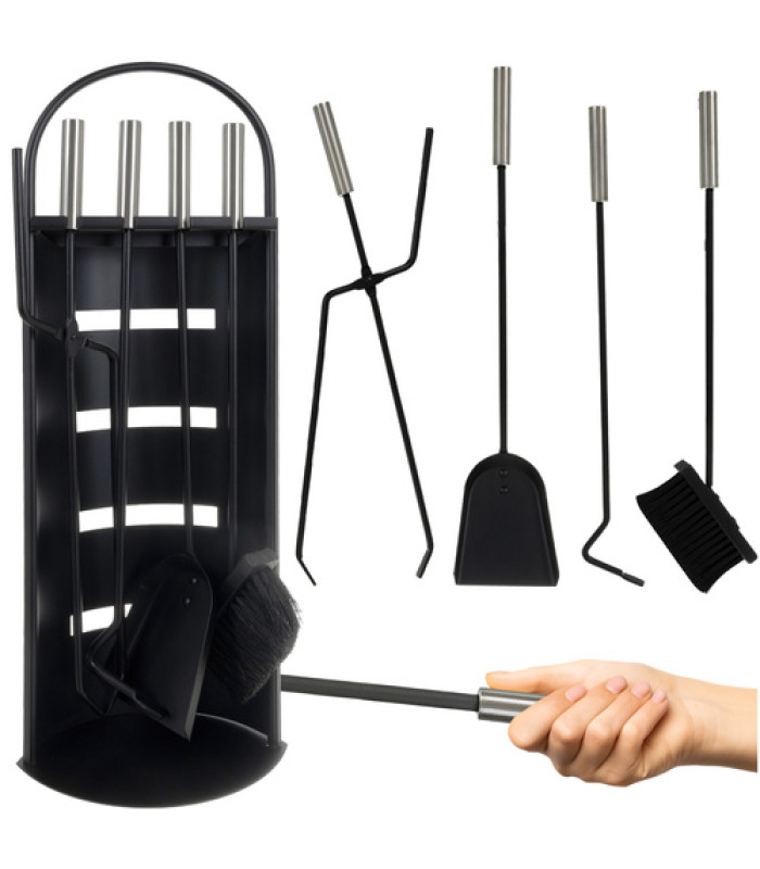 5 viename rinkinys – rinkinyje yra visi židinių ir kitų tipų gaisrų priežiūrai reikalingi elementai: žnyplės, kastuvas, šluota ir žarstukas , todėl rinkinys yra universalus. Visa tai telpa ant pridedamo stovo .