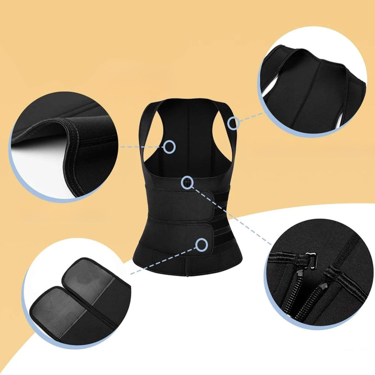 Neoprēna sieviešu fitnesa veste ir ideāla izvēle sievietēm, kas vēlas paātrināt treniņu rezultātus un sasniegt vēlamo figūru. Izgatavota no augstas kvalitātes neoprēna, tā paaugstina ķermeņa temperatūru vingrošanas laikā, kas veicina svīšanas procesu un intensīvāku kaloriju dedzināšanu.