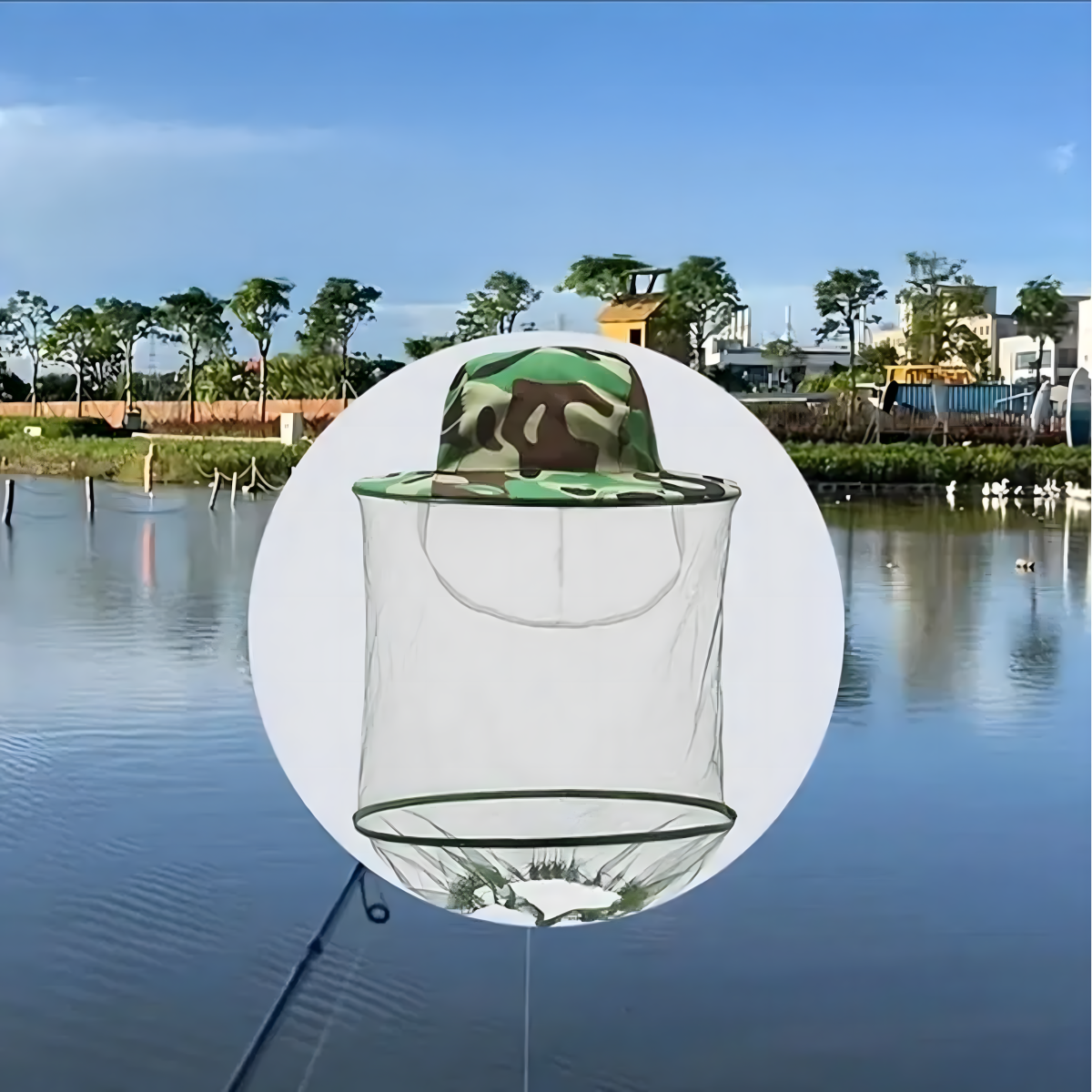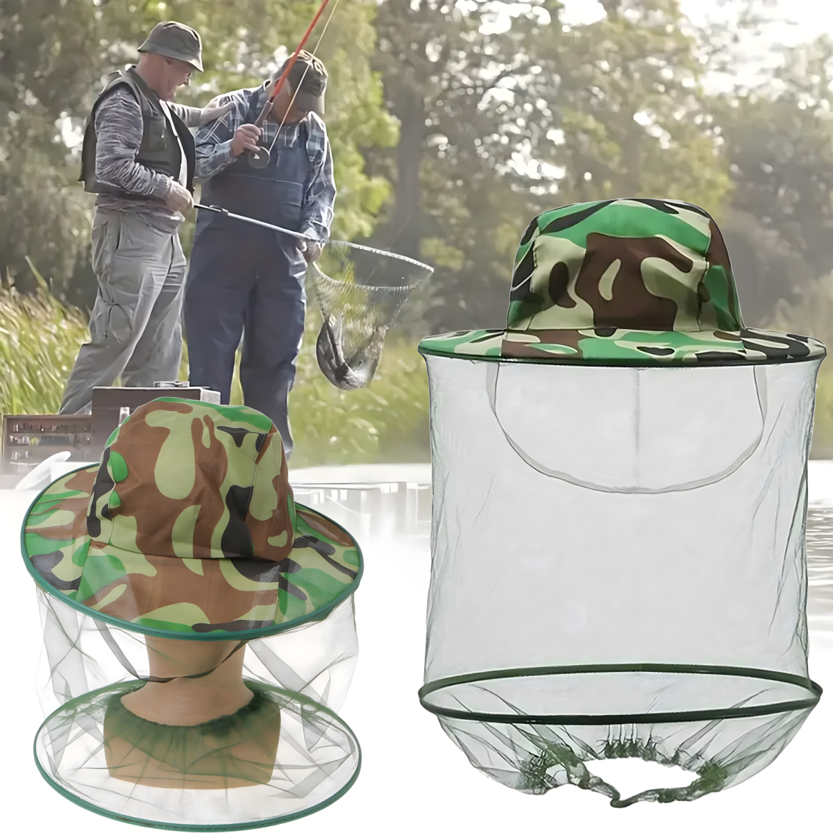 Zvejnieku cepure ar moskītu tīklu – efektīva aizsardzība pret odiem, bitēm un citiem kukaiņiem. Viegla, elpojoša, ar platu malu un elastīgu siksnu zem kakla. Ideāla makšķerēšanai, mežā vai dārzā!