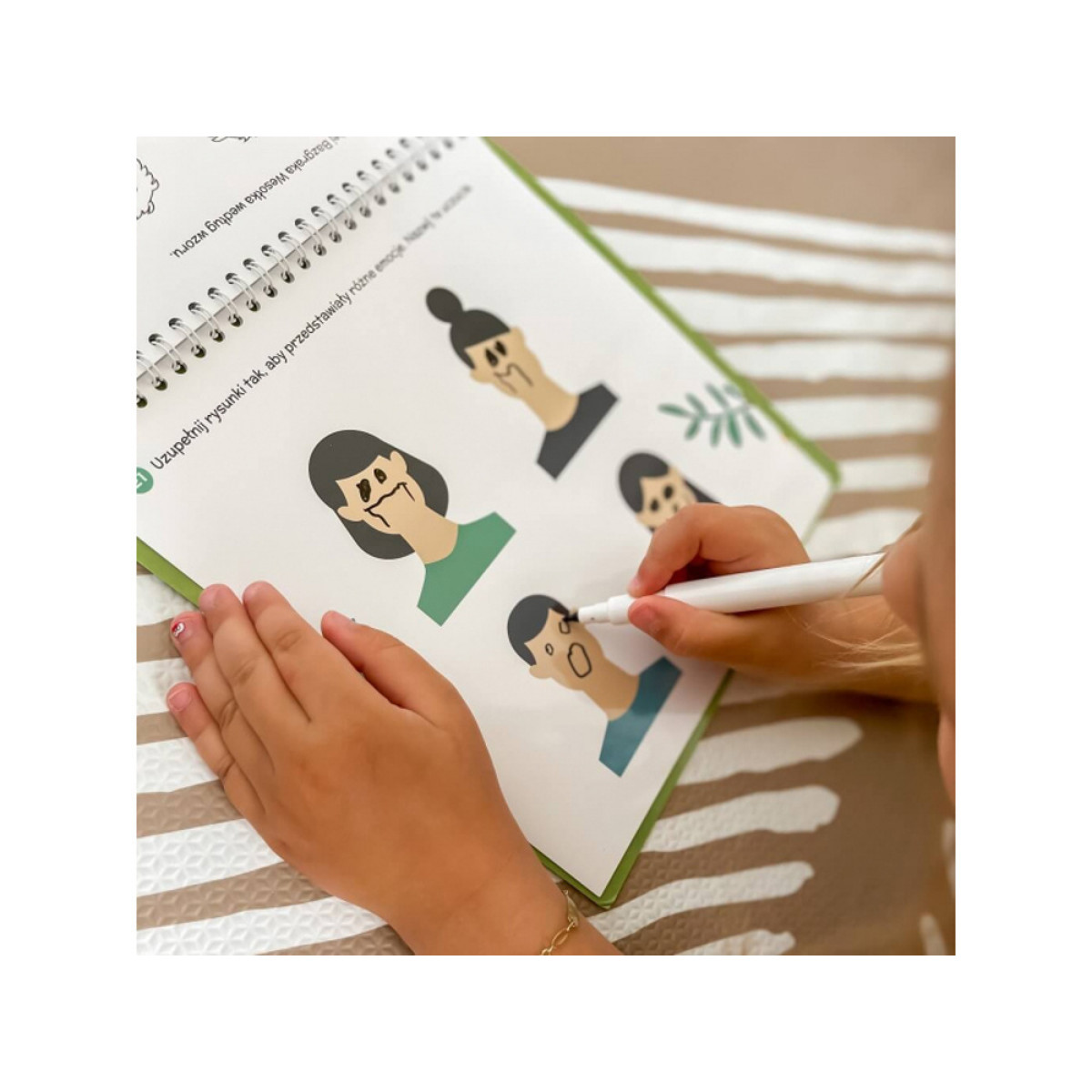 - Grāmata ir atkārtoti izmantojama, pateicoties mazgājamām lapām un pievienotajam sausās tīrīšanas flomāsterim.