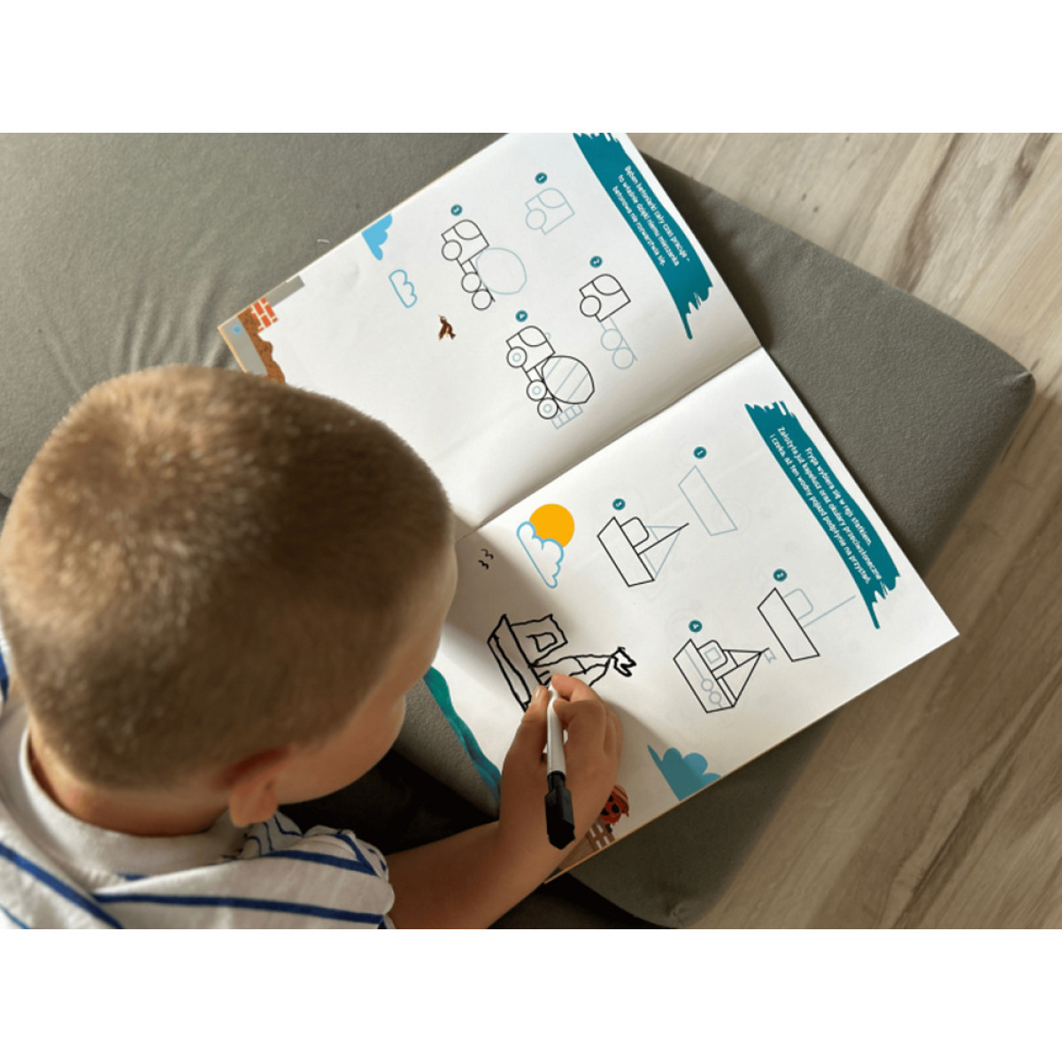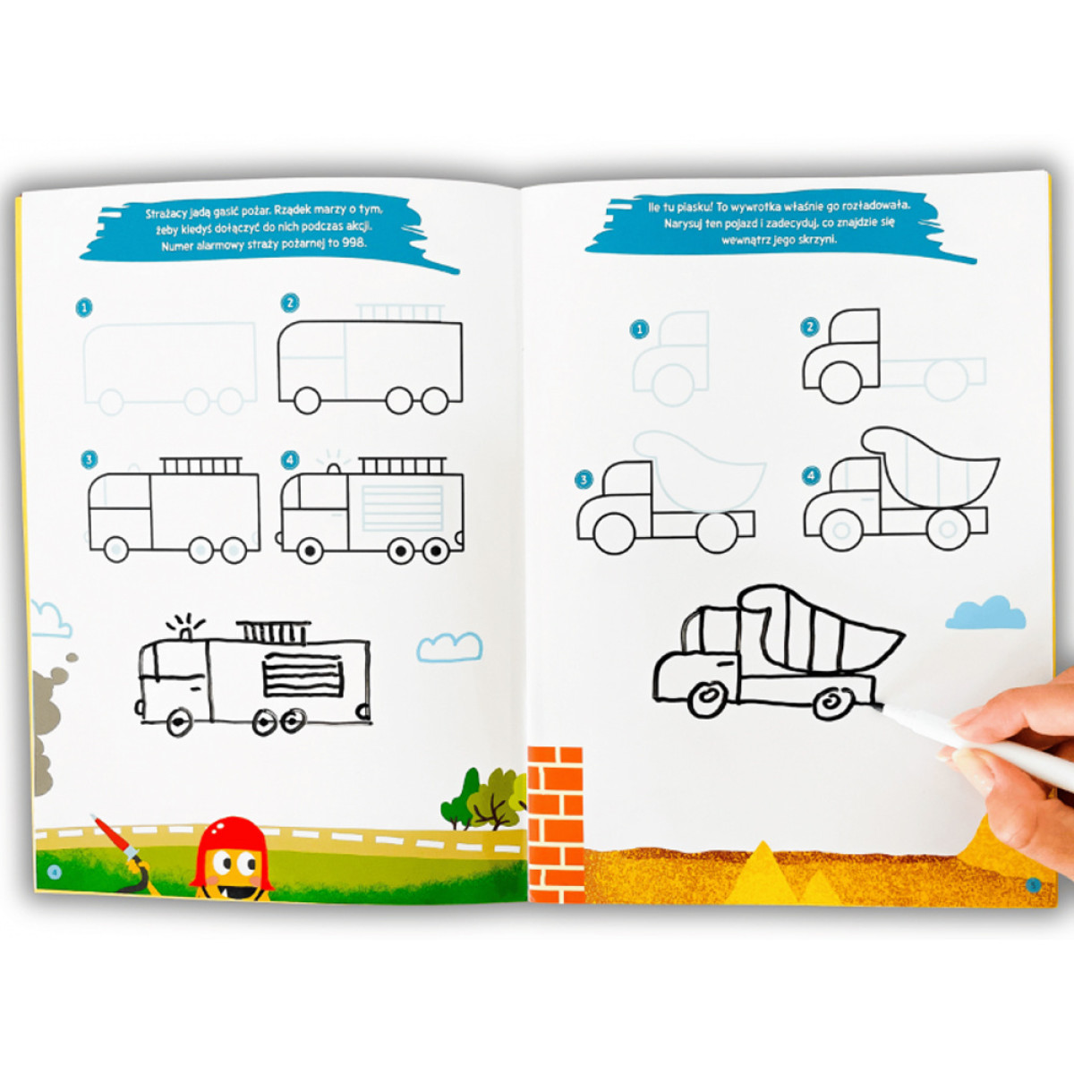 - instrukcijas dažādu transportlīdzekļu zīmēšanai soli pa solim (automašīnas, ātrā palīdzība, ekskavators, raķete, kuģis un citi),
