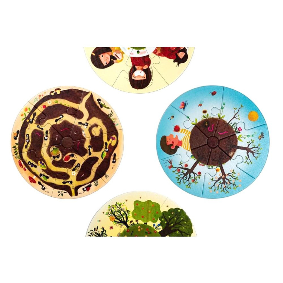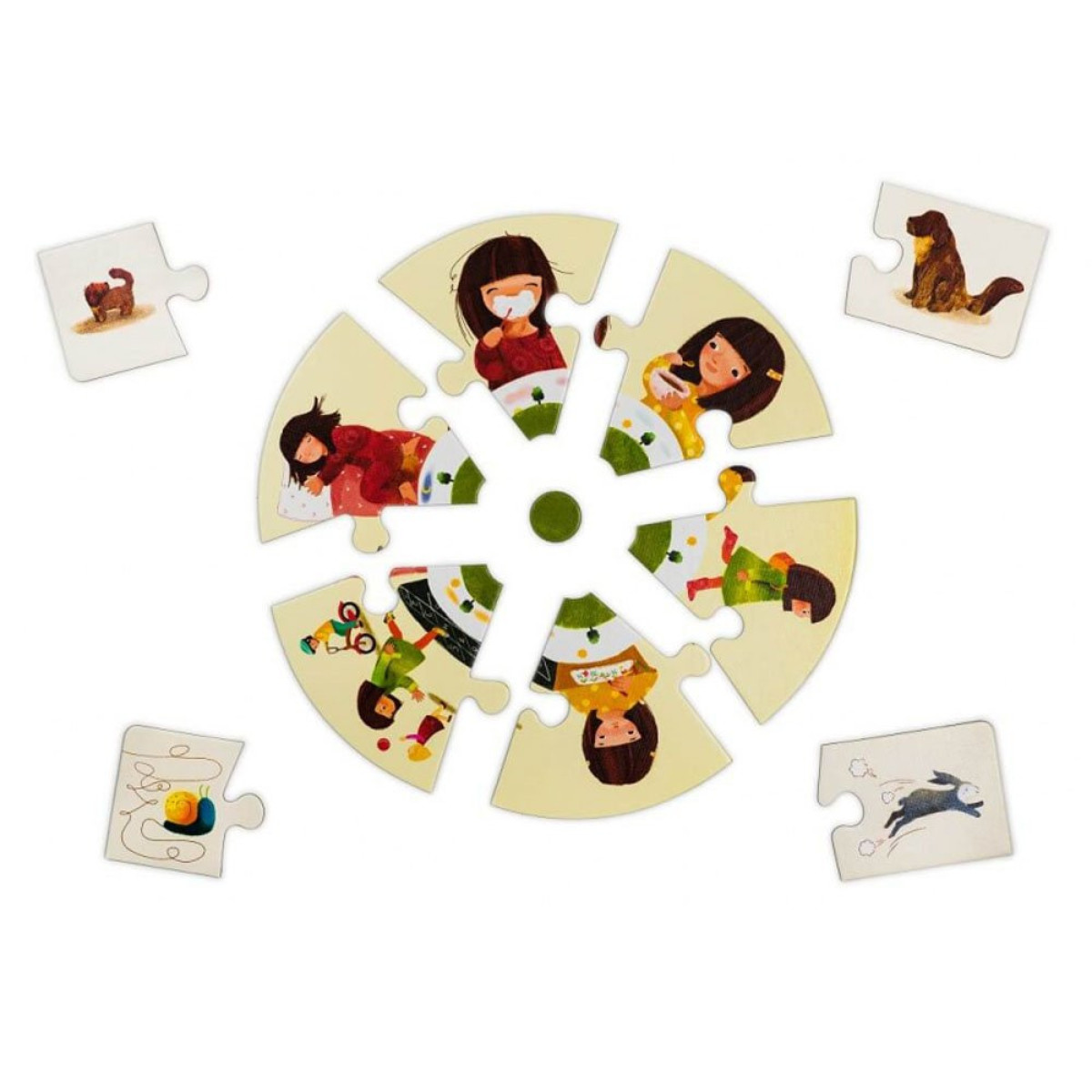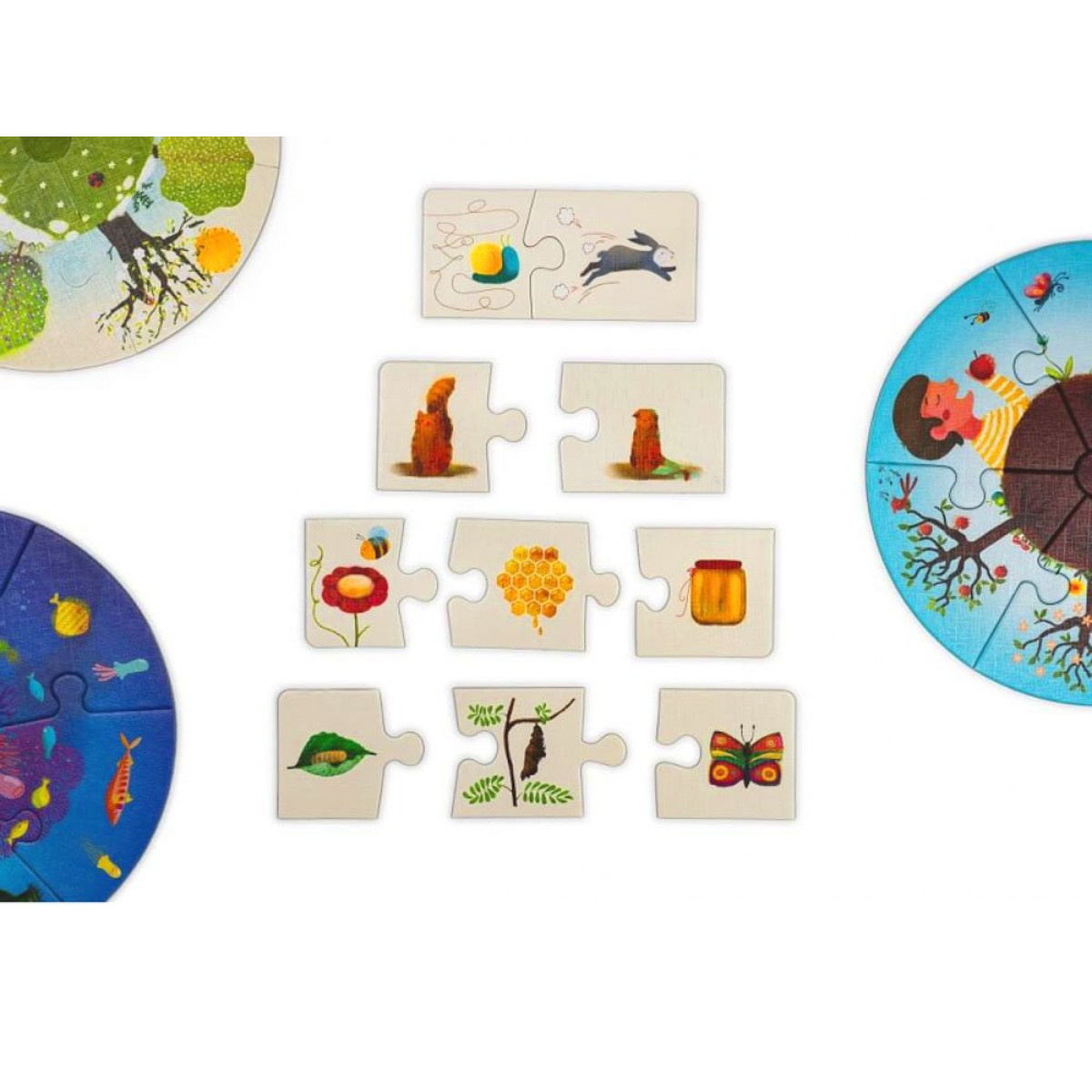 Izglītojošā spēle „Loģika” (3-7 gadi) ir ideāls piedāvājums zinātkāriem bērniem, kuriem patīk atklāt dabas noslēpumus, veidot puzles un risināt mīklas. Komplektā ietilpst 8 sešu elementu puzles apaļā formā, kas māca par dienas un gadalaikiem, kā arī dažādām dzīvnieku sugām, un 8 divu un trīs elementu puzles, kas attēlo pretstatu un cēloņu-seku attiecības.