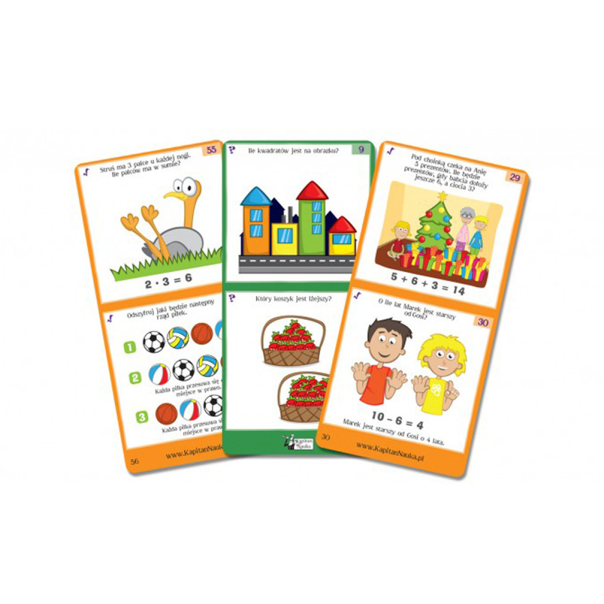 Kapteinis Nauka Matemātika ir attēlu mīklu kolekcija bērniem agrīnās skolas vecumā. Matemātika ir daļa no mūsu ikdienas, tāpēc uzdevumi attiecas uz ikdienas situācijām, kurās ātra un pareiza skaitīšana ir ļoti svarīga, piemēram, iepirkšanās, ēdiena gatavošana vai taupīšana. Katrs kartiņš satur 2 matemātikas uzdevumus ar pareizajiem risinājumiem otrā pusē. Pateicoties Mīklām, matemātisko darbību un teksta uzdevumu risināšana kļūs par labu izklaidi kopā ar loģiskās domāšanas attīstīšanu un atmiņas vingrināšanu.