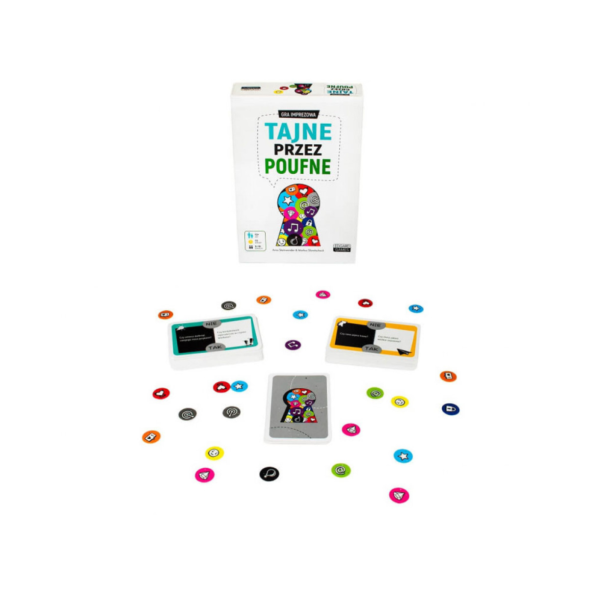 "Tajne przez poufne" ir lieliska kāršu spēle, kas piemērota spēlēšanai ar draugiem un ģimeni. Vai esat slepeni pārbaudījis kāda telefona saturu? Vai esat devies prom no restorāna bez maksāšanas? Vai esat māņticīgs? Spēlējiet šo spēli kopā ar draugiem un uzziniet, ko viņi par jums zina un ko jūs par viņiem zināt!