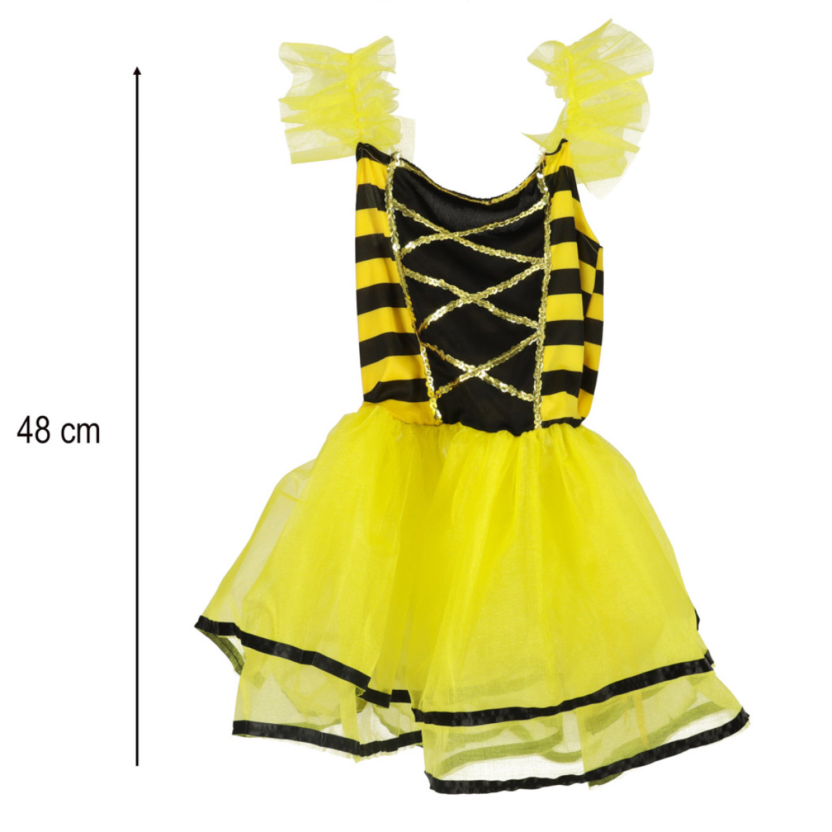 Bites kostīms bērniem ir trīsdaļīgs komplekts, kurā ietilpst melni-dzeltens kleitiņa, spārni un galvas stīpiņa ar taustekļiem. Kostīms ir ideāls dažādiem pasākumiem, piemēram, Helovīnam, masku ballēm, tematiskām ballītēm un skolas izrādēm. Paredzēts bērniem ar augumu 100-110 cm, nodrošinot pilnīgu kustību brīvību.