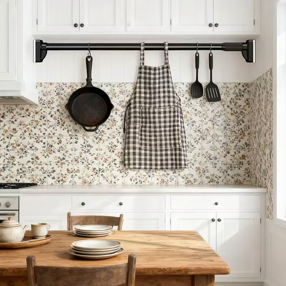 - Ideāli piemērots kā aizkars stienis, dušas stienis vai drēbju pakaramais.