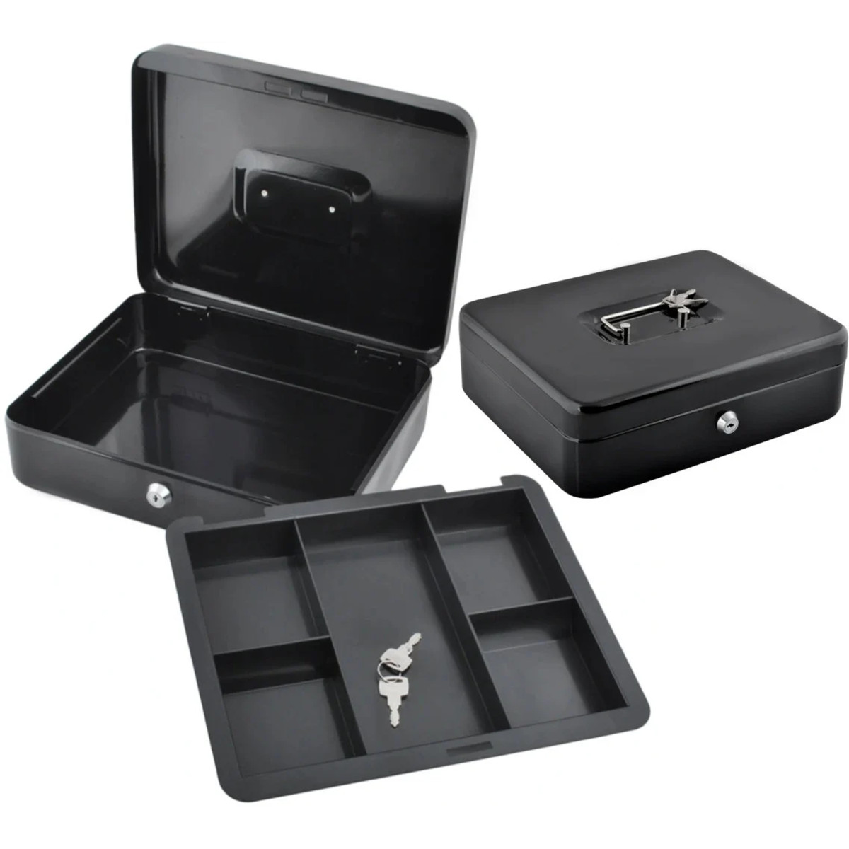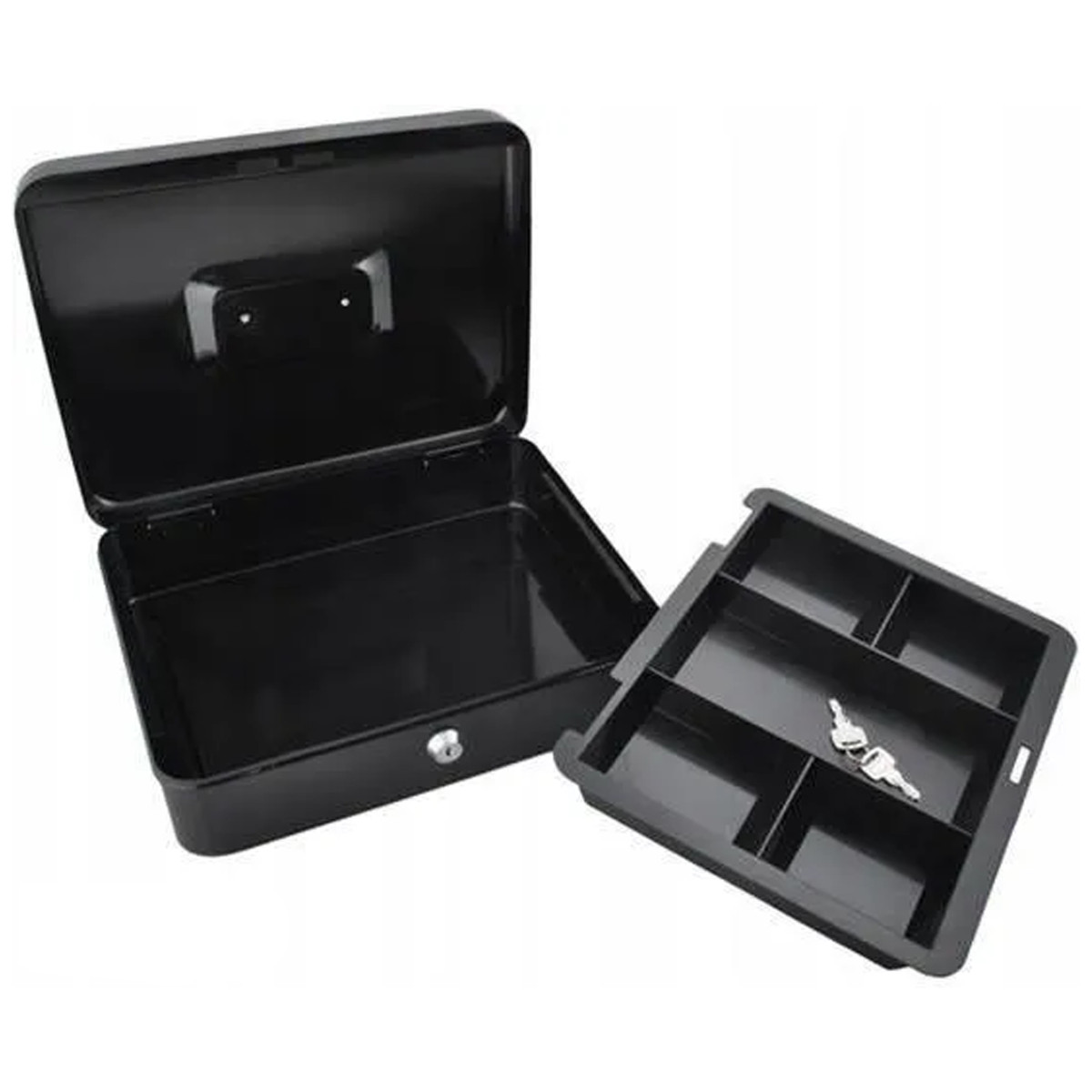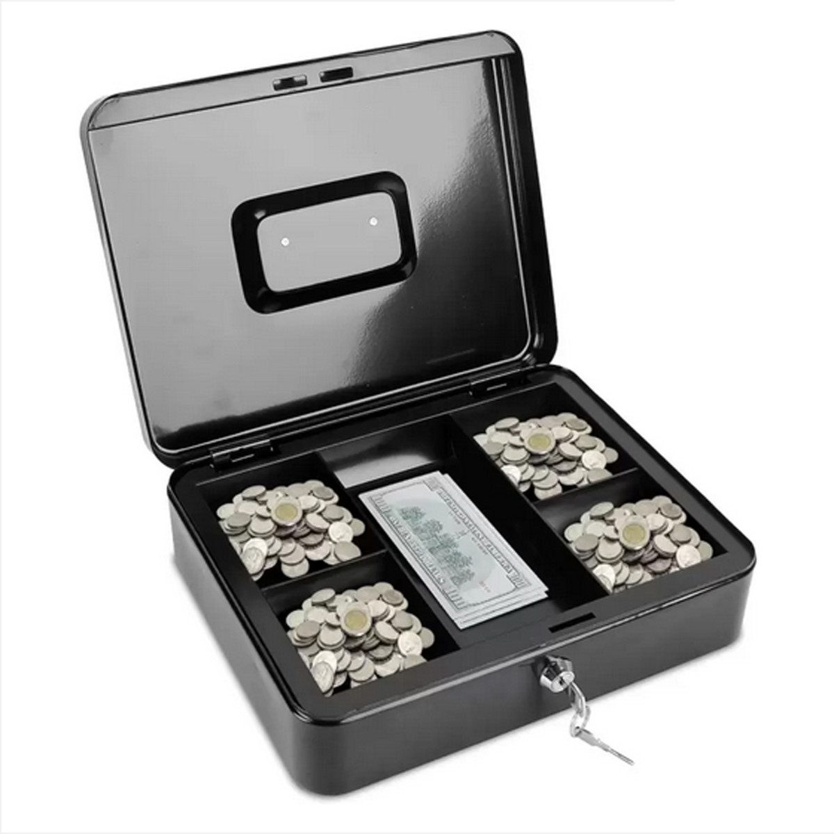 Metāla seifs ar atslēgu ir lielisks risinājums mazu un lielu naudas summu, dokumentu un citu nelielu priekšmetu glabāšanai. Tas ir aprīkots ar plauktu un nodalījumiem, kas ļauj viegli šķirot monētas.