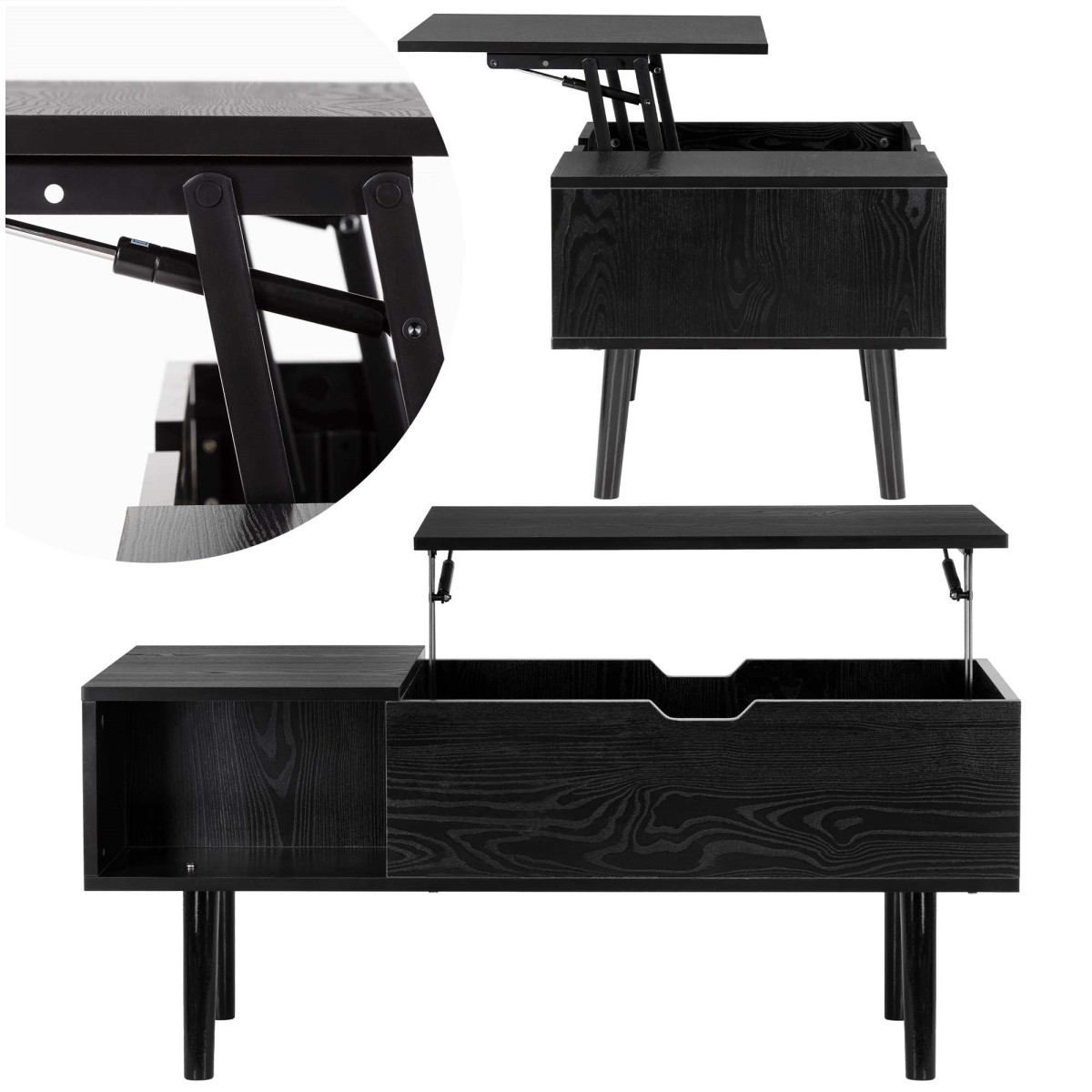 springos® kafijas galds ir praktiska un moderna izvēle viesistabai, atpūtas zonai vai nelielai telpai. melnā krāsa, koka un metāla kombinācija, kā arī paceļamā virsma padara šo galdu īpaši ērtu ikdienas lietošanai.