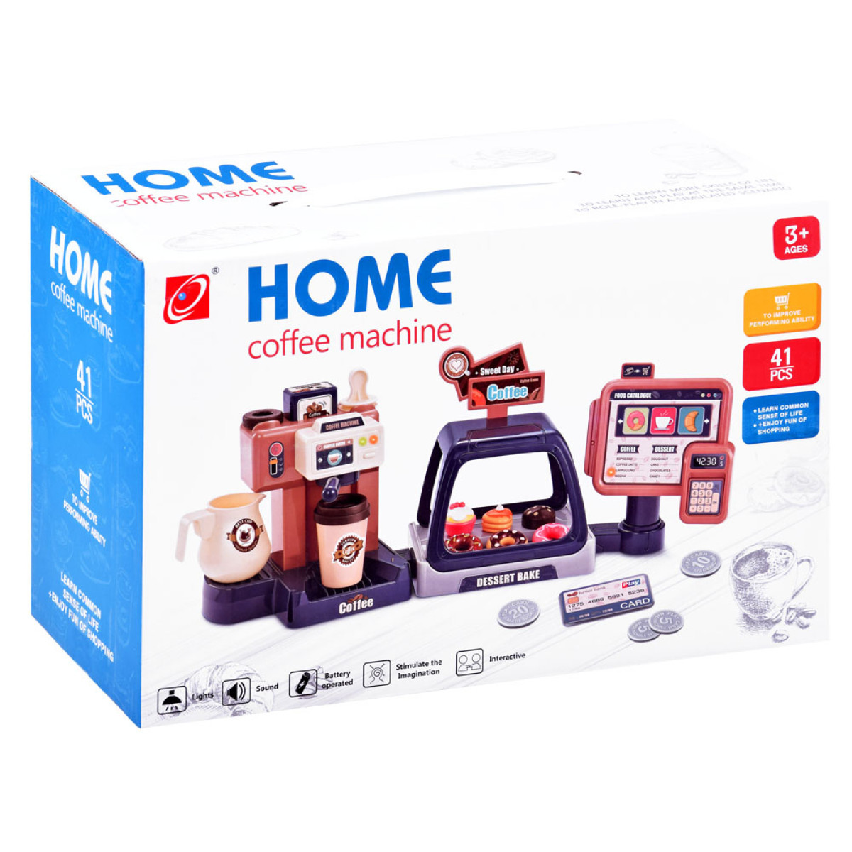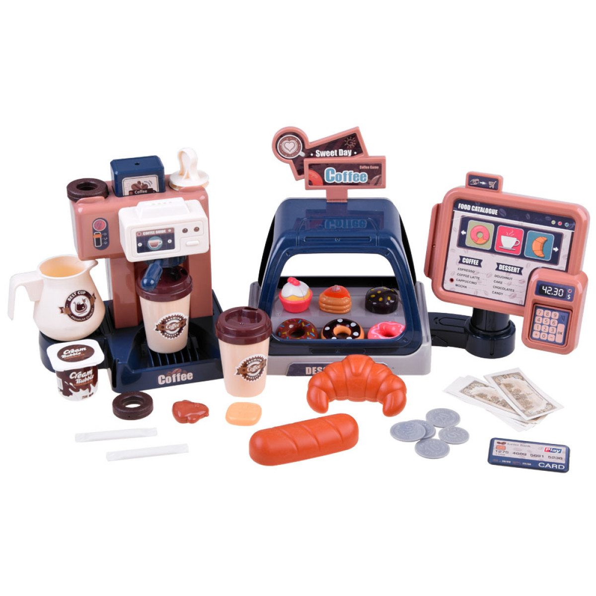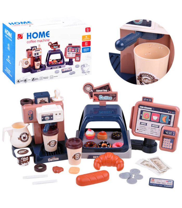 Kafijas automāts ar kases aparātu un vitrīnu noteikti patiks katram mazajam baristam. Komplektā ir 41 elements, kas ietver visu nepieciešamo katrā kafejnīcā. Visi rotaļlietas elementi (kases aparāts, kafijas automāts, vitrīna) var savienot vai izmantot atsevišķi. Rotaļlietai ir gaismu un skaņu efekti.
