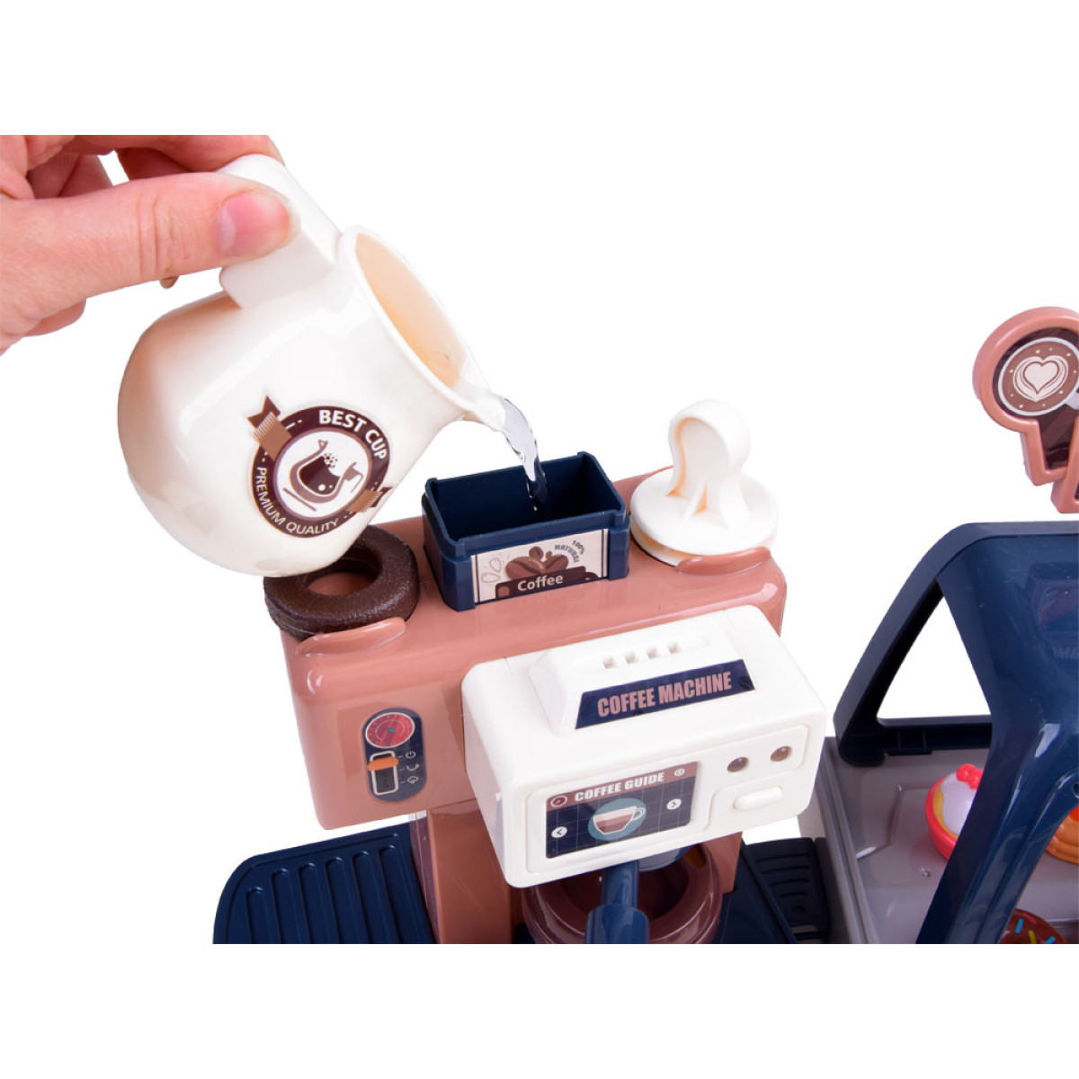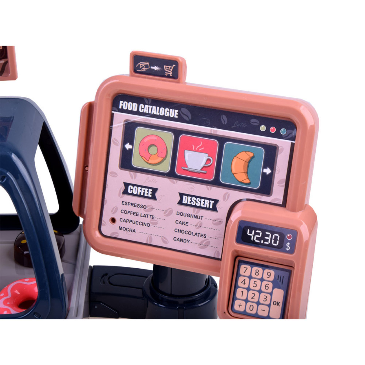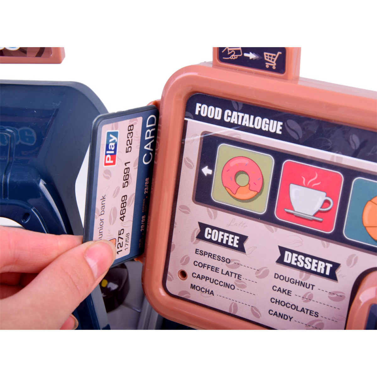 Kafijas automāts ar kases aparātu un vitrīnu noteikti patiks katram mazajam baristam. Komplektā ir 41 elements, kas ietver visu nepieciešamo katrā kafejnīcā. Visi rotaļlietas elementi (kases aparāts, kafijas automāts, vitrīna) var savienot vai izmantot atsevišķi. Rotaļlietai ir gaismu un skaņu efekti.
