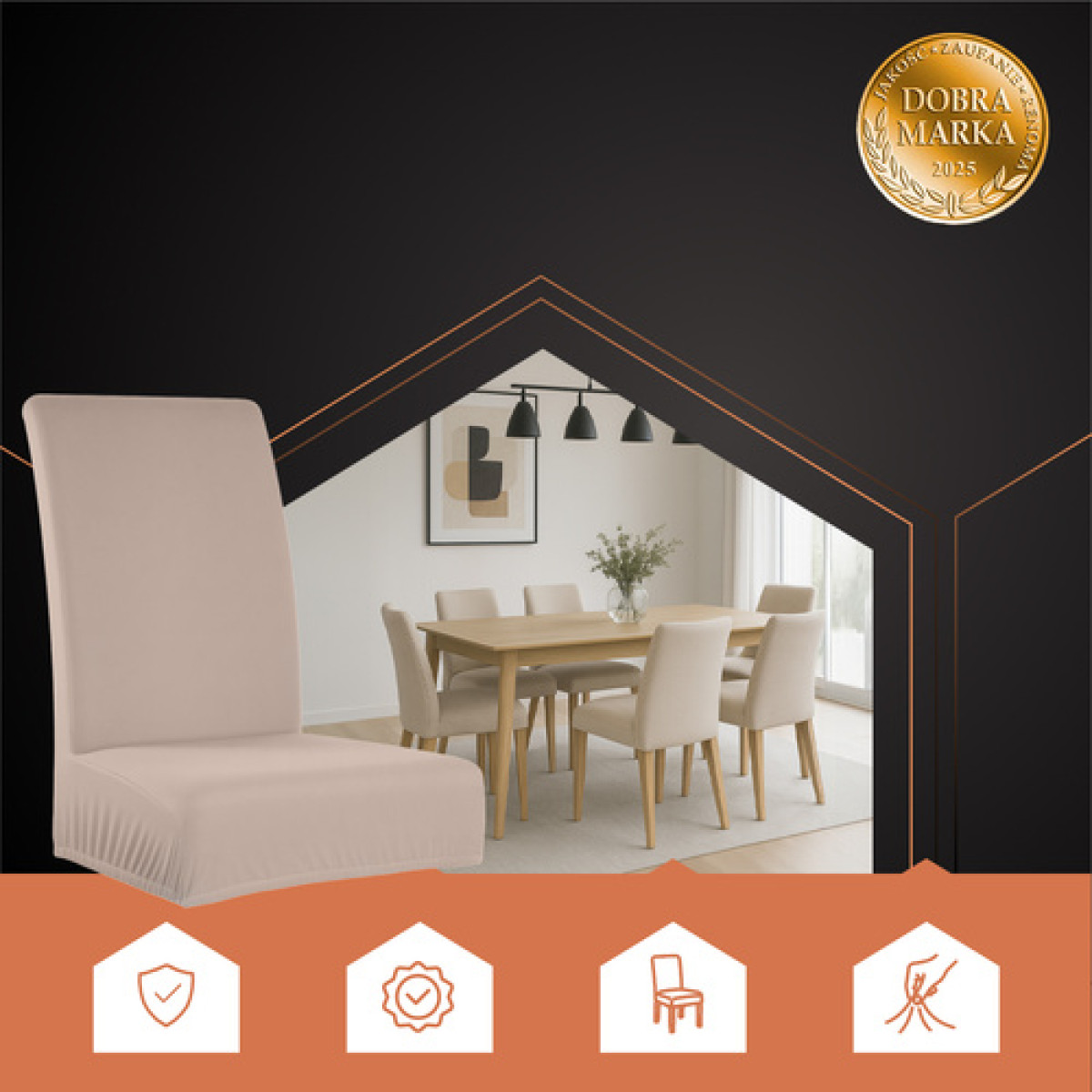 Krēslu pārvalki RUHHY komplekts 6 gab. – universāli, bēšs elastīgs velūrs 65x40x35 cm