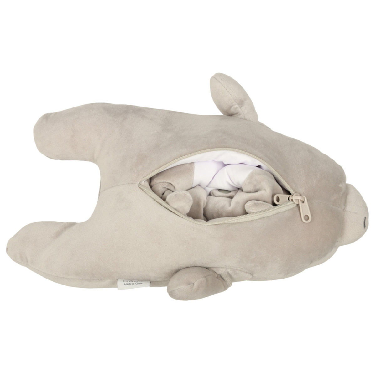 • Rotaļlieta un spilvens vienā - mīksts rotaļu biedrs un ērts atbalsts ceļojumā