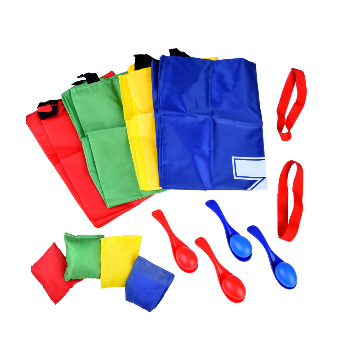 - 18 dažādi elementi: 4 maisi skriešanai (66 x 50 cm), izturīgs neilona materiāls