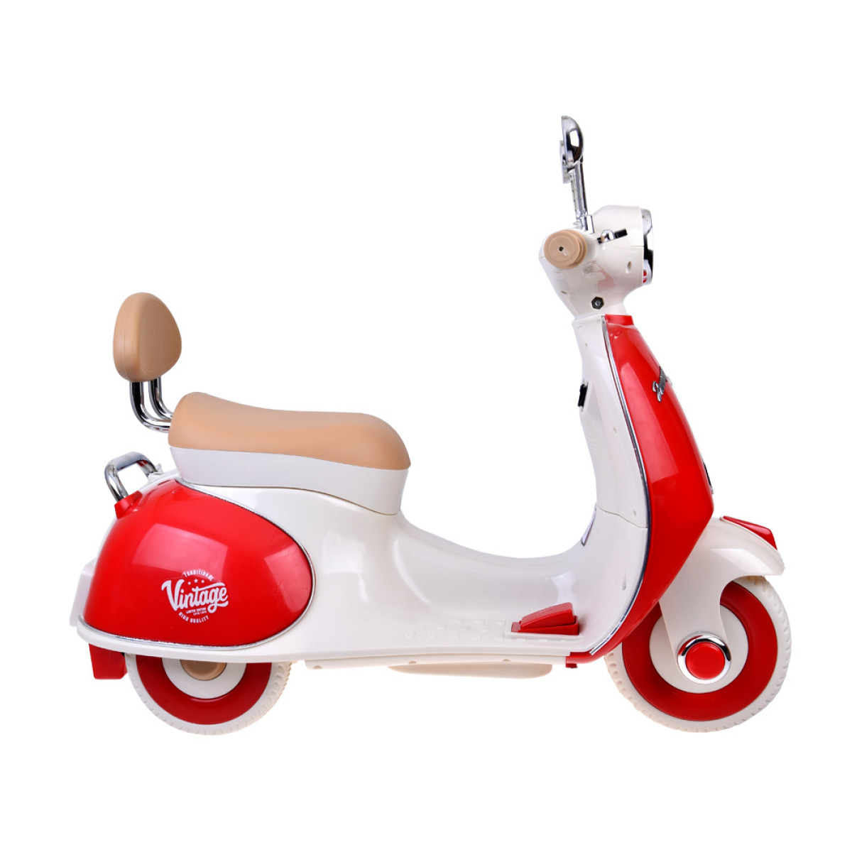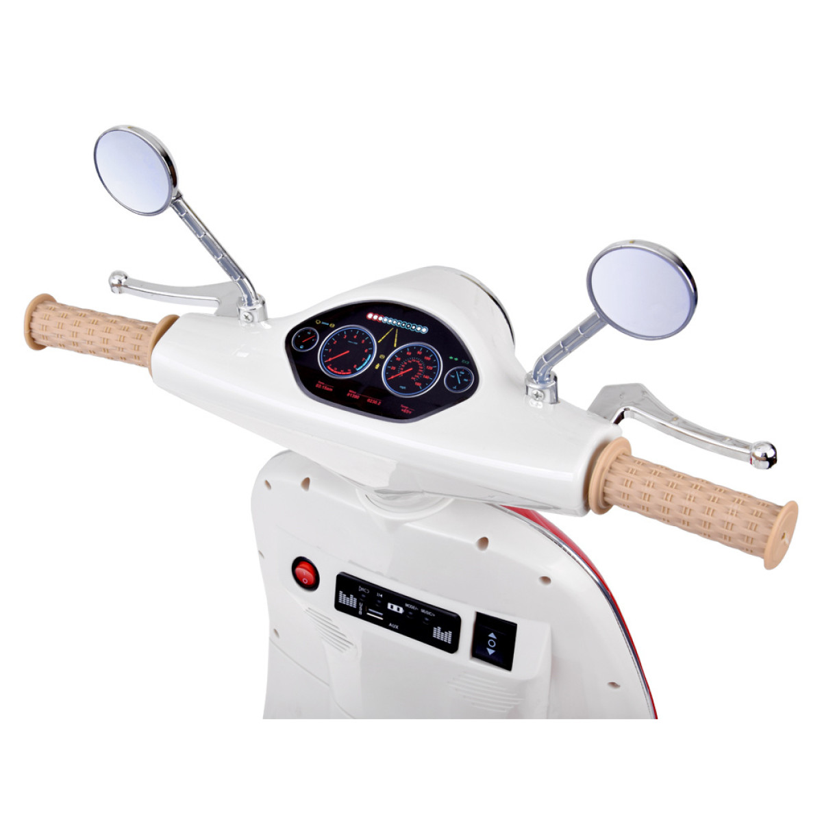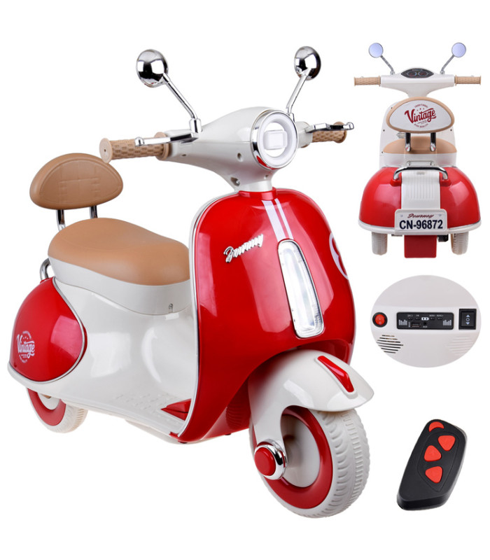 klasiskais elektriskais skrejritenis bērniem vintage stilā pārsteidz ar elegantu izskatu un rūpīgu izgatavošanu. tas ir lieliska dāvana dzimšanas dienā vai citos svētkos. pateicoties kompaktajiem izmēriem, skrejritenis ir piemērots gan braukšanai parkā, gan mājās.