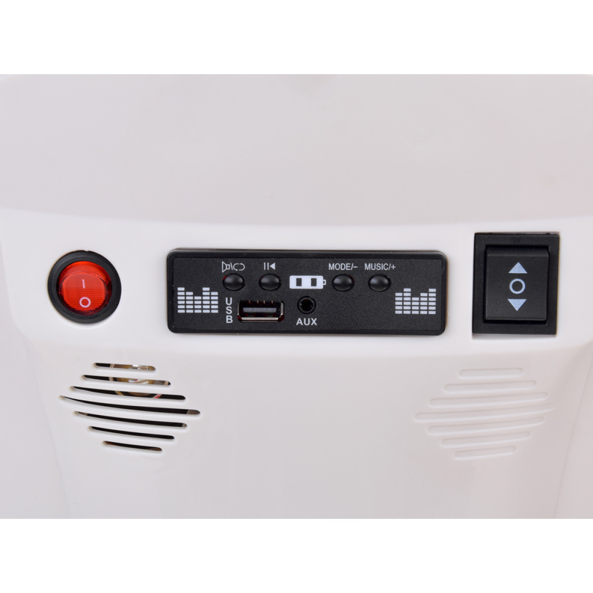 - papildu funkcijas – led gaismas, motora skaņas, signāls un mūzikas panelis vai mp3/usb pieslēgvieta padara braucienu vēl interesantāku.
