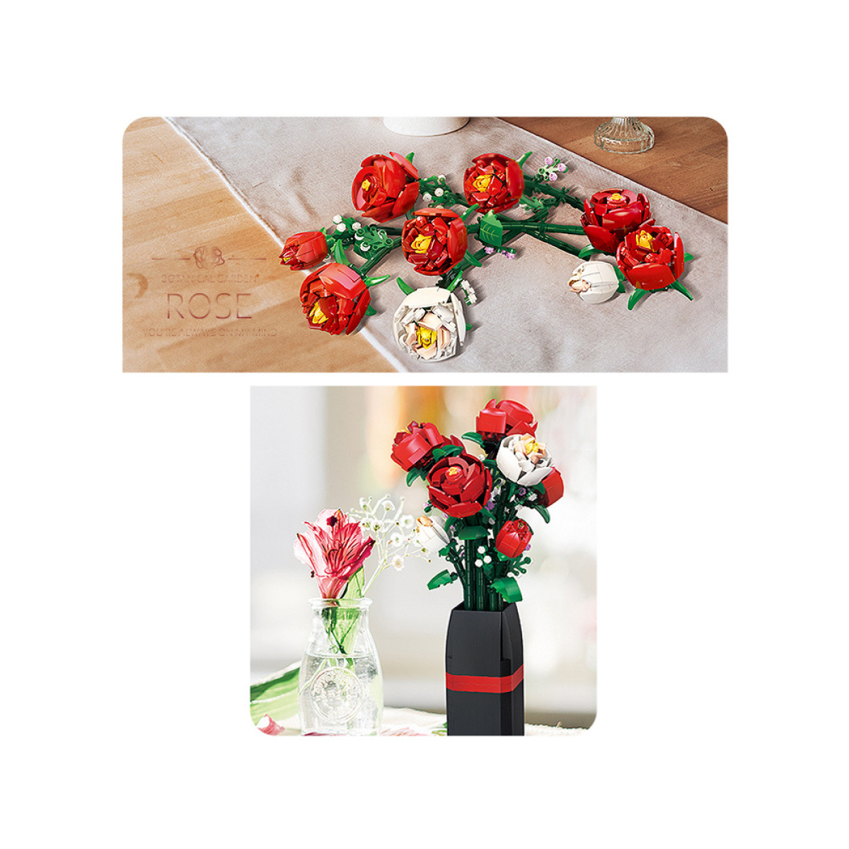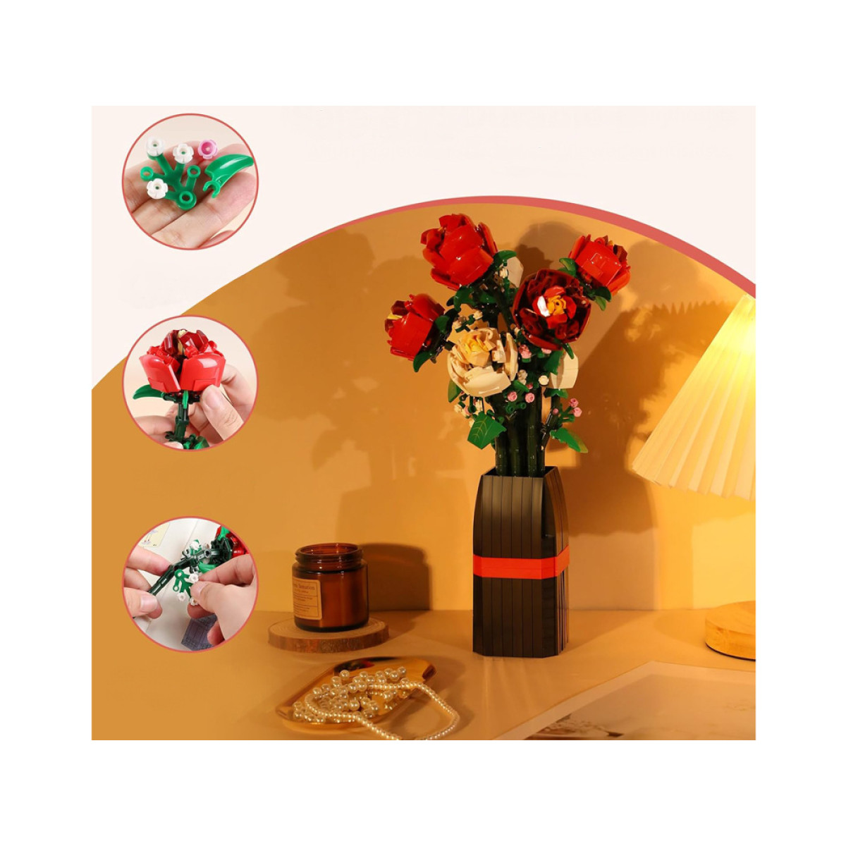 Konstrukcijas bloki Ziedu pušķis VĀZE ROZES + vāze 818 elementi ZA5760