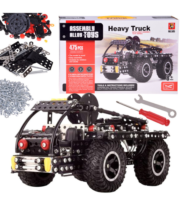 Metāla konstruktora komplekts apvidus kravas automašīnai ar instrumentiem, 475 elementi